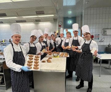 Im Rahmen des GenussCampus verarbeiten wir außerdem – entsprechend den Werten von Slow Food und Genussland Kärnten – vorrangig saisonale und regionale Produkte und stärken soziale Kompetenzen durch gemeinsame Aktivitäten (Mittagessen, Sport, Reisen, Exkursionen, Wettbewerbe, Volleyballturnier usw.).