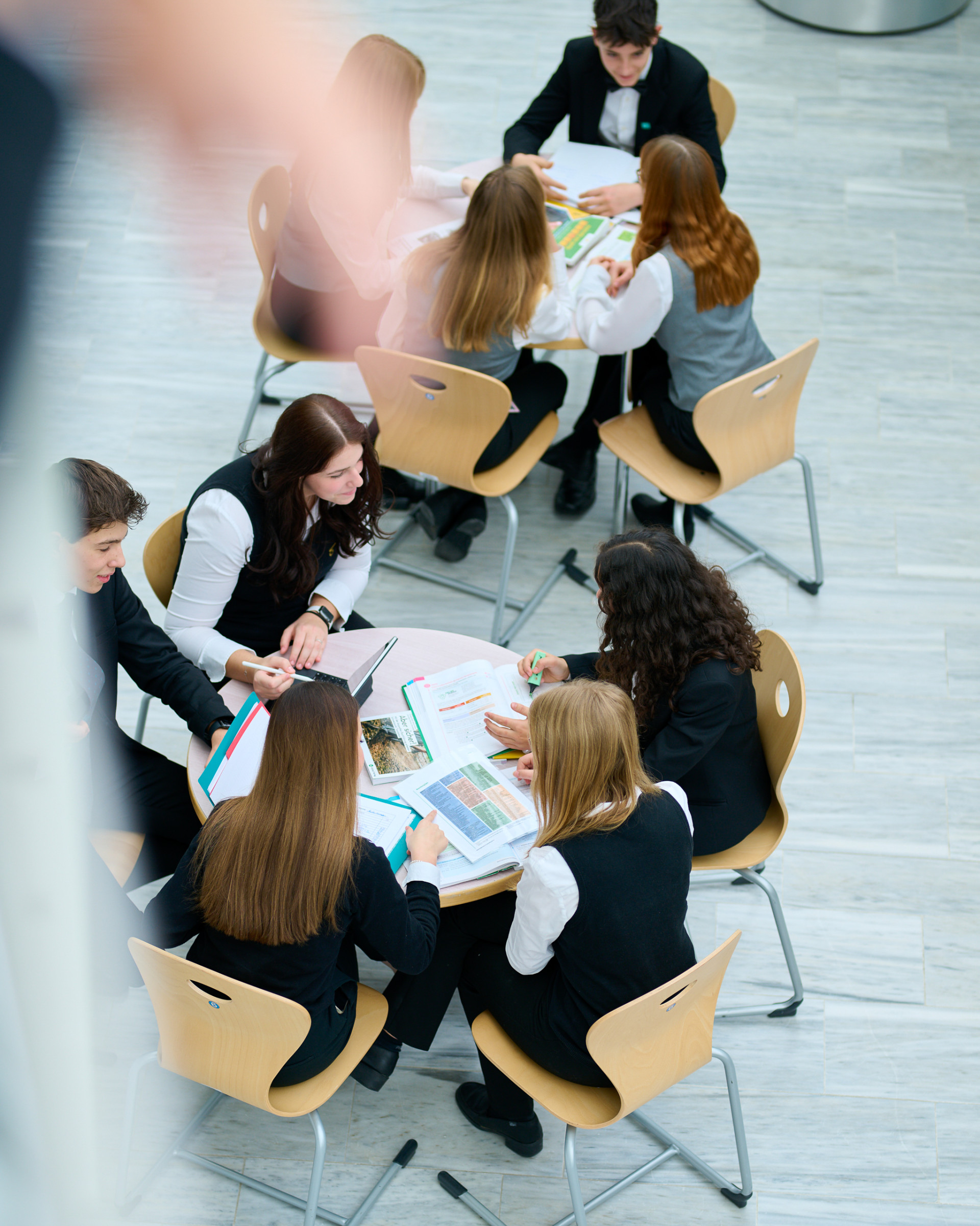 Im Schul- und Studiergebäude befindet sich die Direktion, Verwaltung, die Klassen, Garderobe (für Externe), EDV-Räume, Lehrküchen, Turnsaal, Lehrer:innen-Zimmer, Rundbar, das Abendrestaurant usw. Im Outdoor-Bereich gibt es Sitzgelegenheiten, einen Teich und einen großen Sportbereich (Fußball- und Volleyball-Platz).
