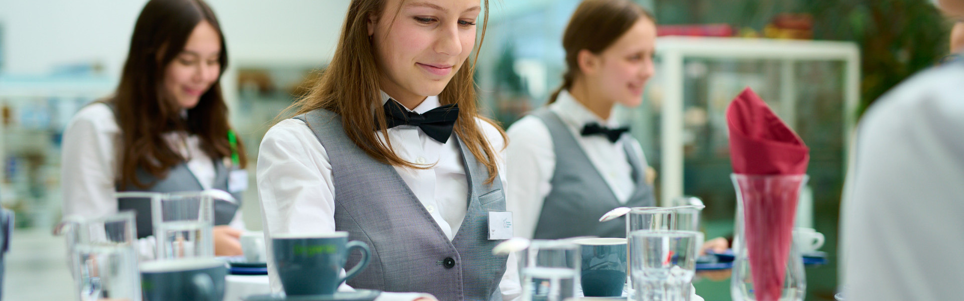Es gibt entsprechende Vorgaben für Rezeption, Küche und Servicebekleidung. Unsere KTS Schuluniform wird in allen Unterrichtsgegenständen und auch bei offiziellen Events und Veranstaltungen getragen (Exkursionen, Arbeitseinsätze usw.).