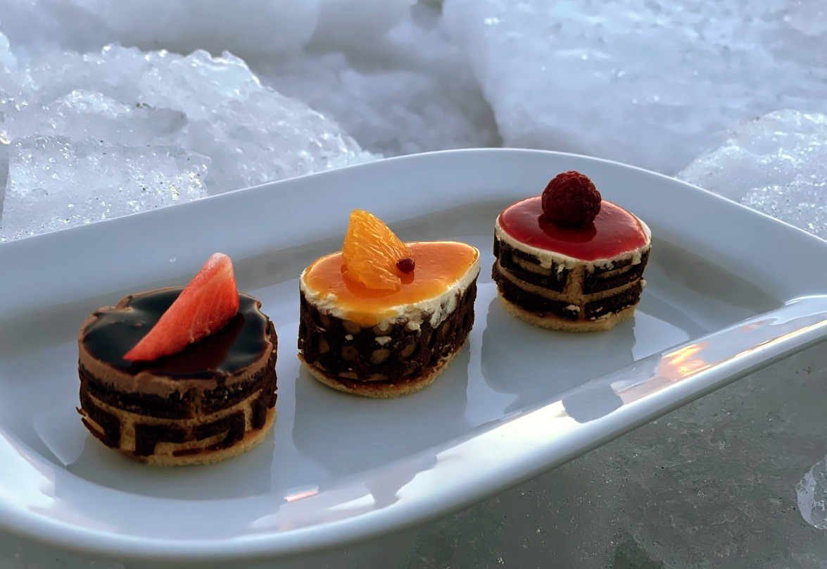 Hier ein Auszug aus unserem süßen Programm: Petit fours, Tortendekor, der richtige Umgang mit Schokolade, Eisherstellung usw.