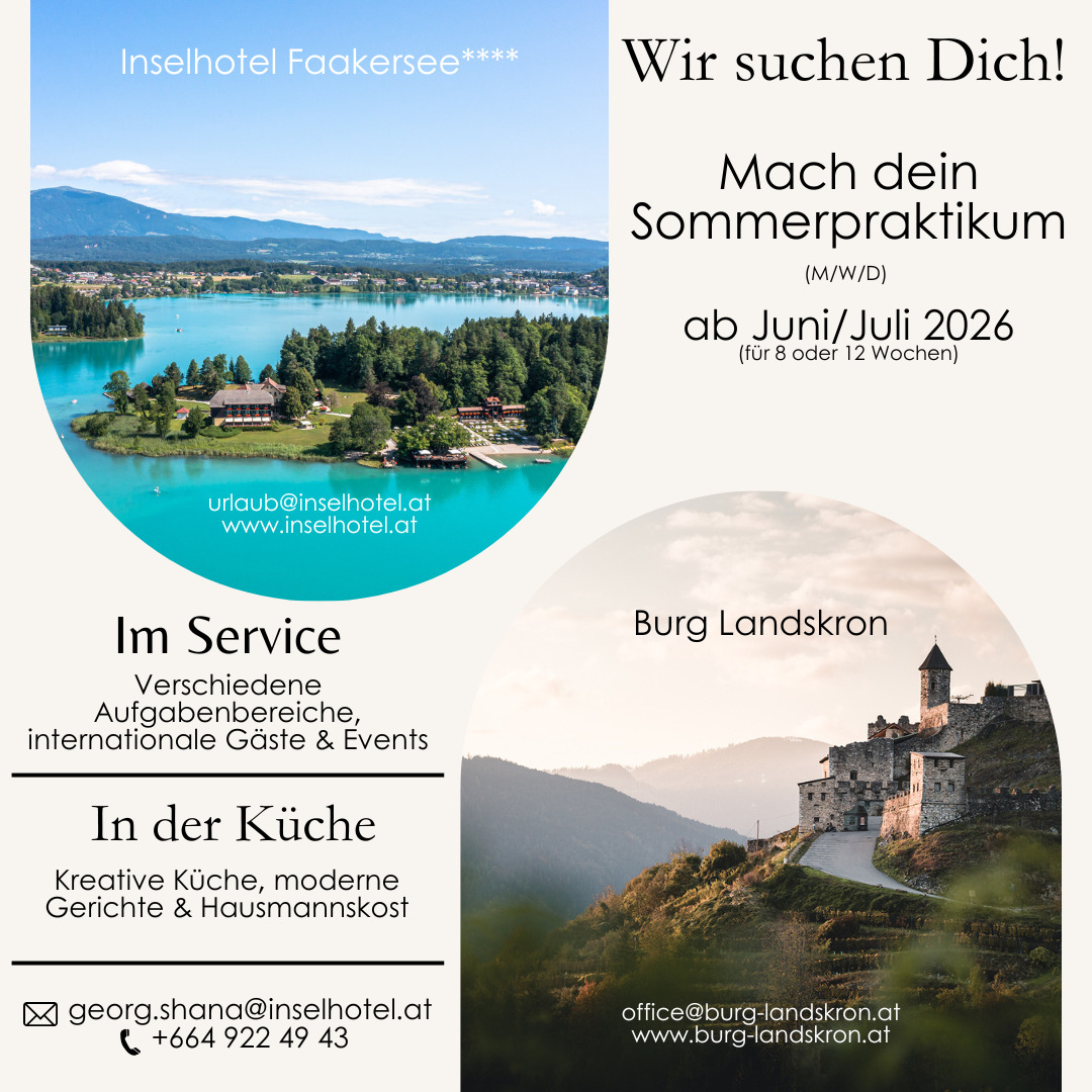 Praktikum im einzigen Inselhotel Österreichs am Faaker See oder auf der Burg Landskron