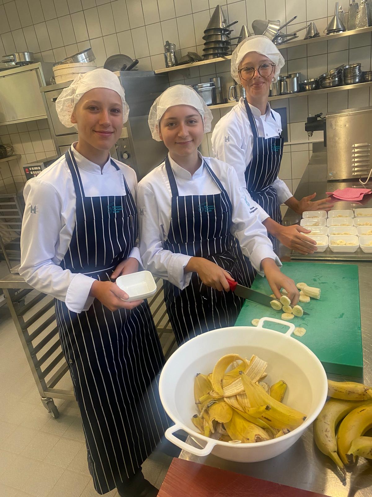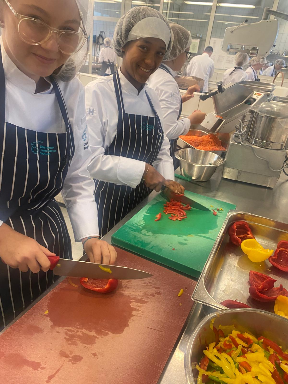Um mit voller Energie in den Schulalltag zu starten, gibt es im Internat Vollpension (Frühstück, Mittag- und Abendessen) und für die externen Schüler:innen gibt es die Möglichkeit am Mittagessen teilzunehmen. Die Zubereitung der Verpflegung erfolgt im Rahmen des Betriebspraktikums durch die Schüler:innen gemeinsam mit den Köchen in den jeweiligen Betriebsküchen im Atrium.