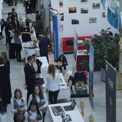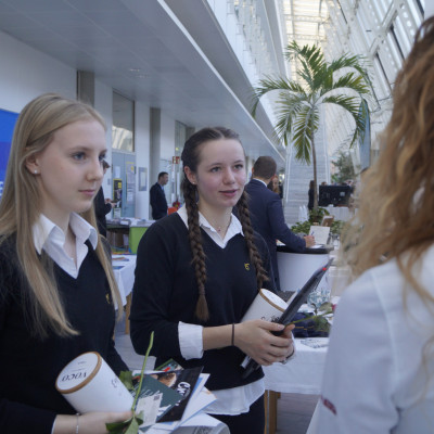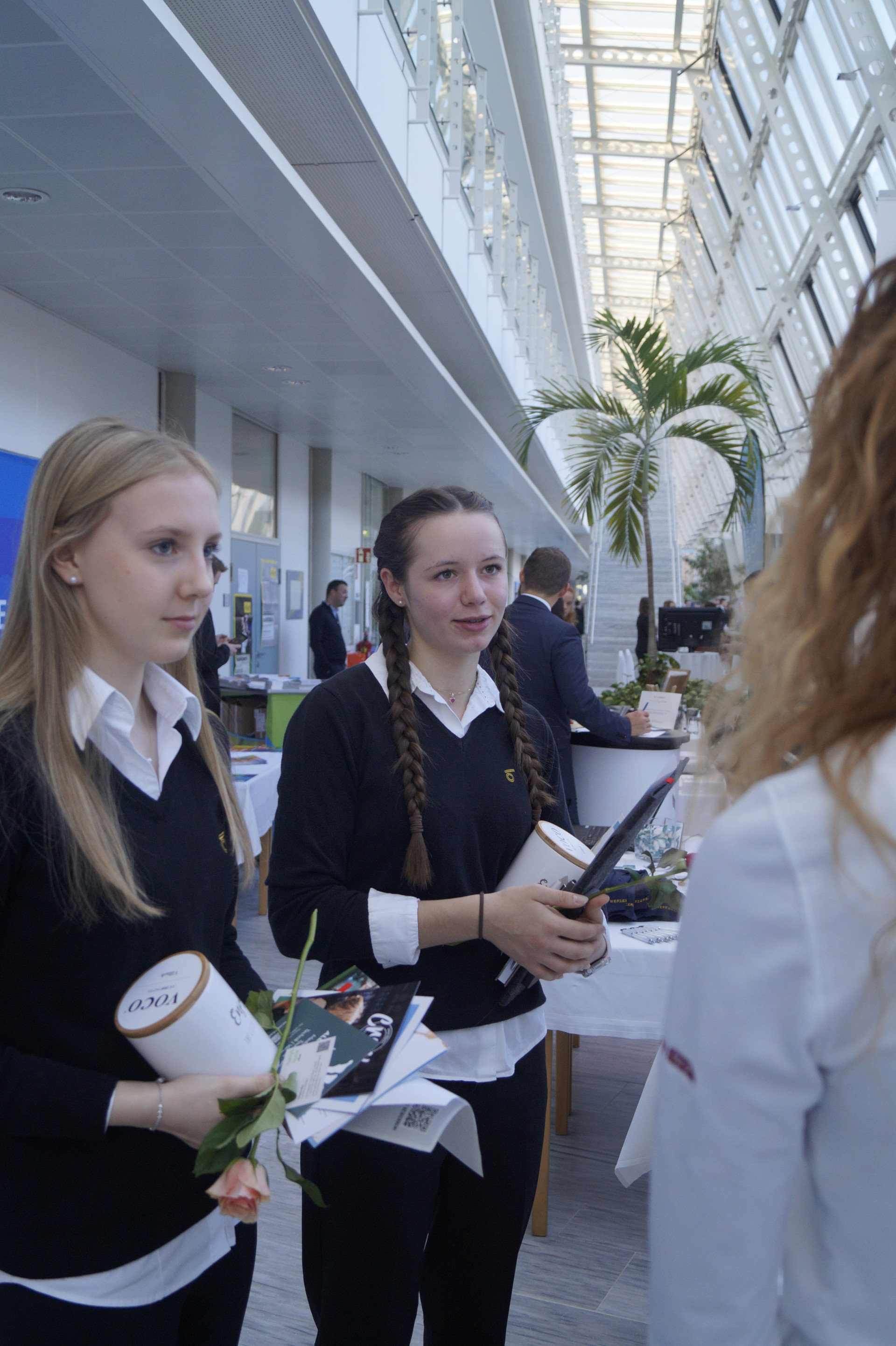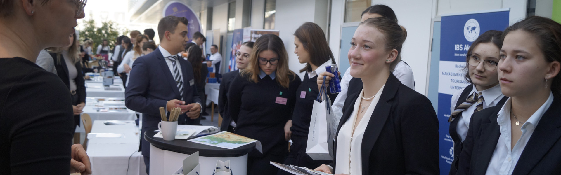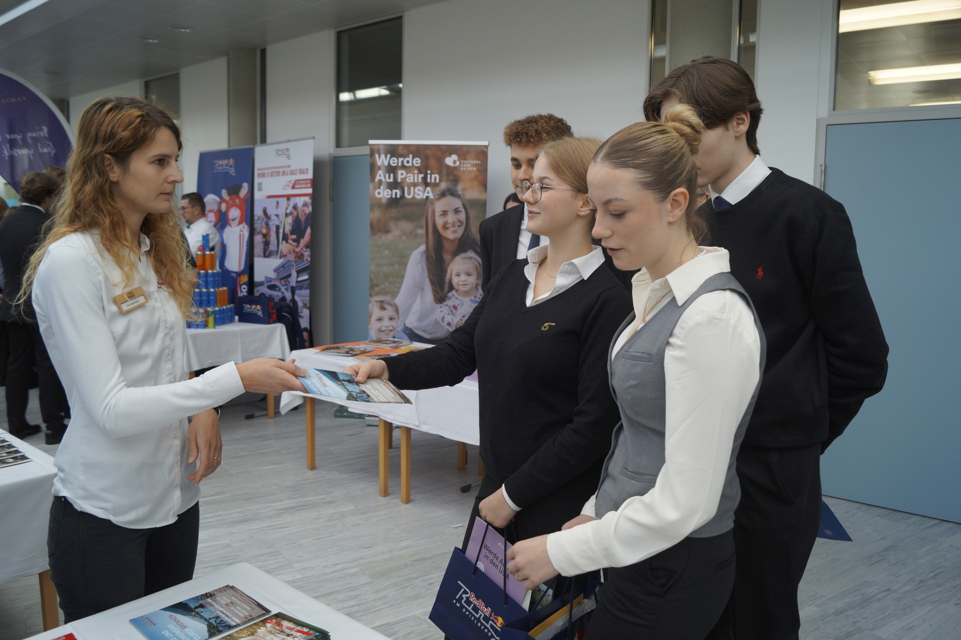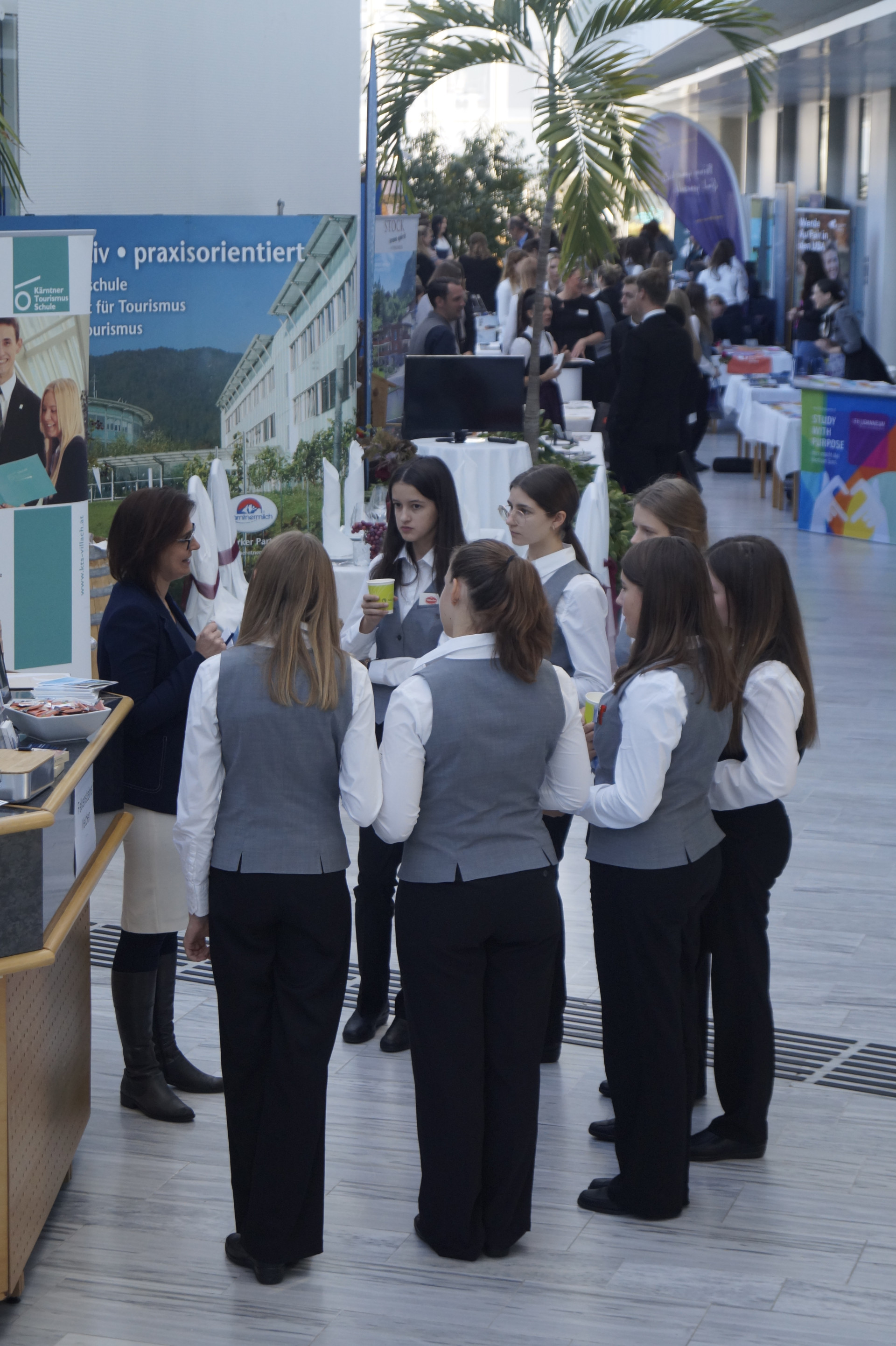 Für die Anschluss-Studien bzw. tertiären Ausbildungsformen waren internationale und österreichische Universitäten und Fachhochschulen vertreten. Besonders erfreulich, dass viele der Aussteller:innen einen Bezug zur Schule hatten und als Teil der weltweiten KTS Family immer in Kontakt zur KTS bleiben. So freute sich ua. Absolvent Florian Stockenbojer über viele Praktikumsanfragen für Tauroa oder Absolventin Eva Hobitsch für den Brennseehof. Neben den zahlreichen Kärntner Betrieben, durften wir dieses Jahr auch neue Betriebe wie zB. Red Bull Spielberg, Loisium Resorts, Dachsteinkönig und das 5-Sterne-Hotel Interalpen im Haus begrüßen.