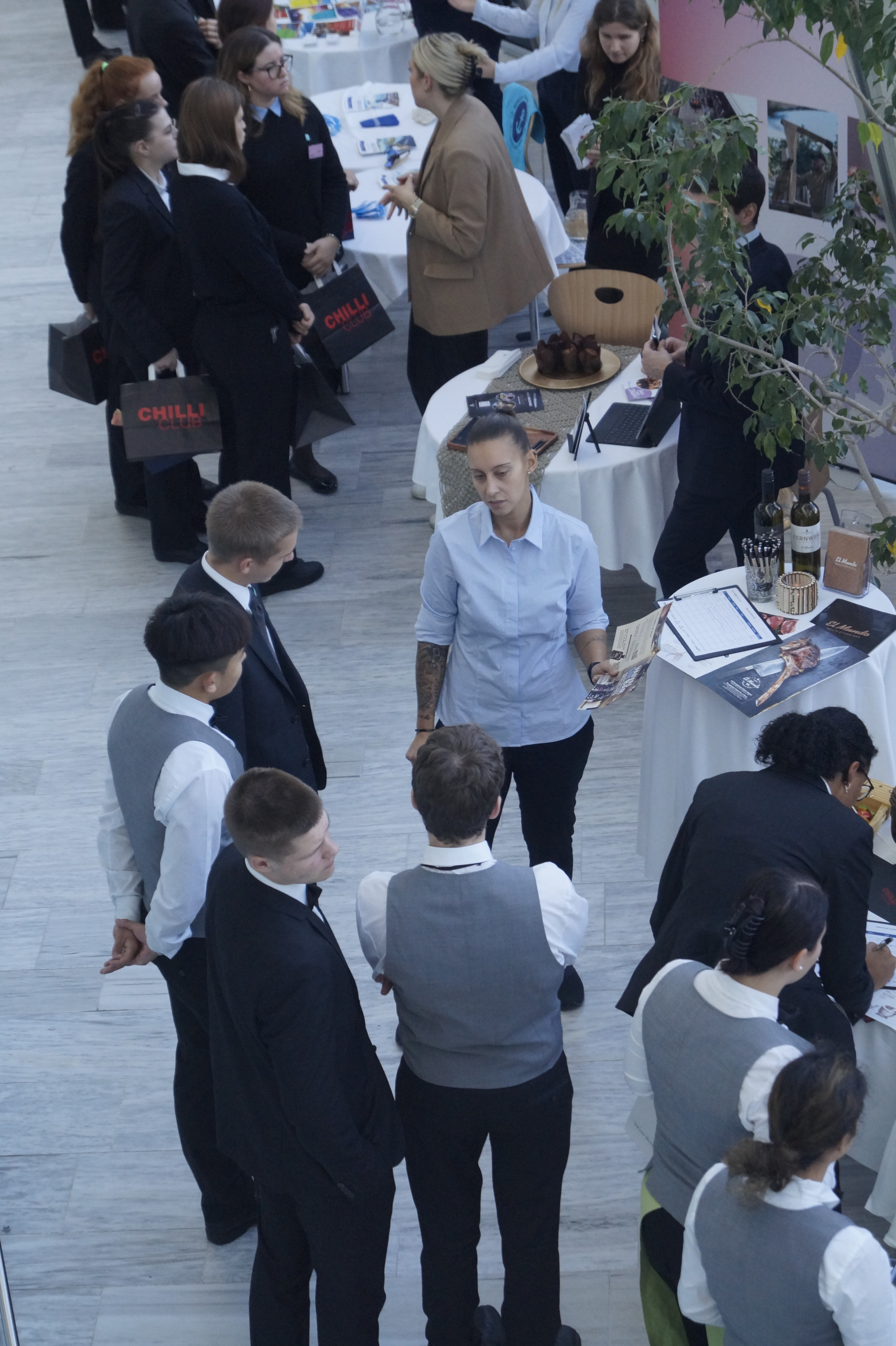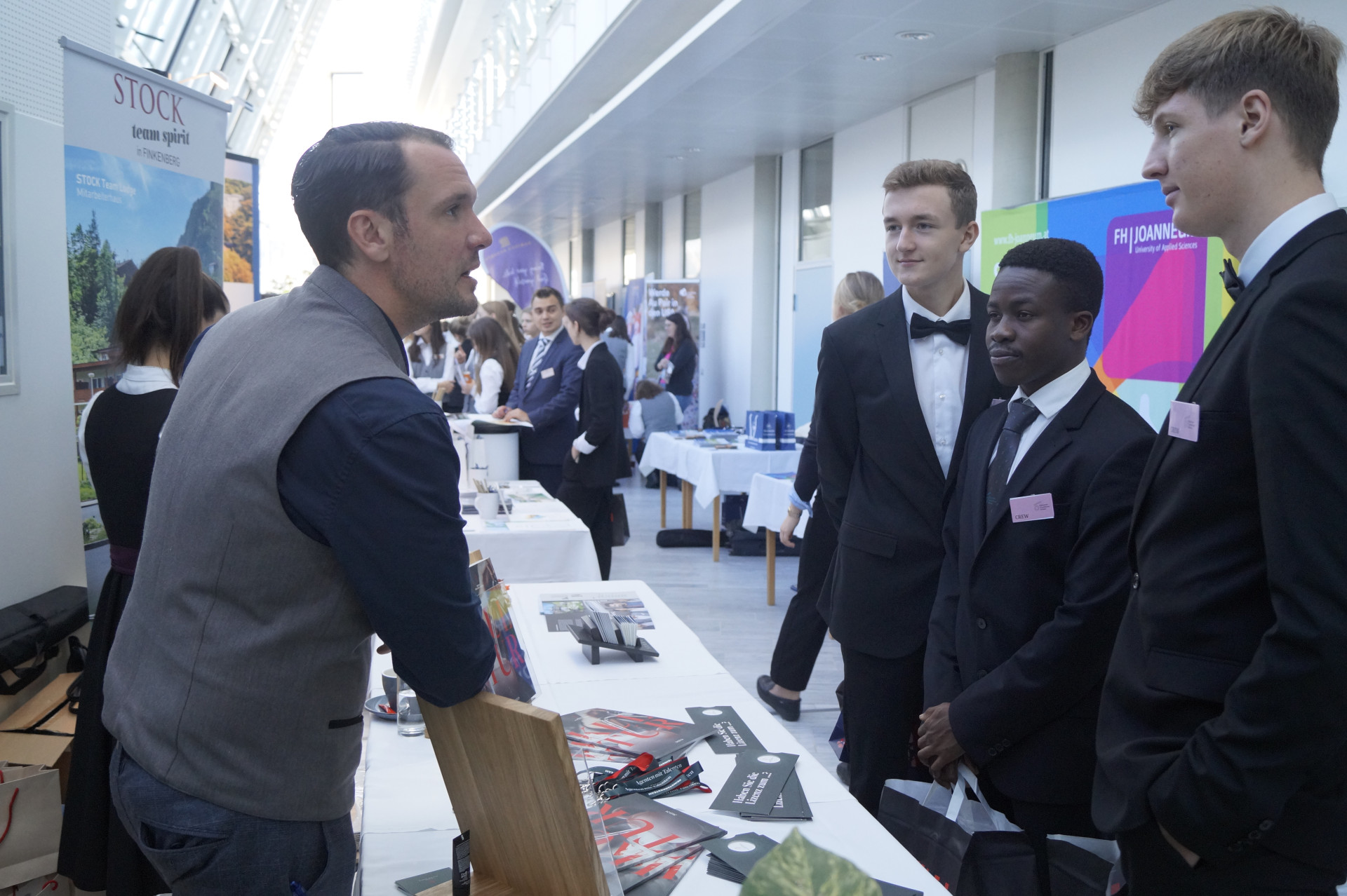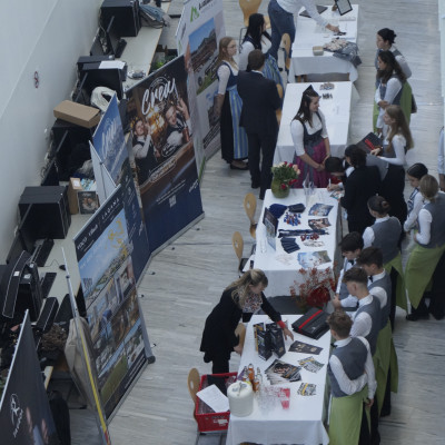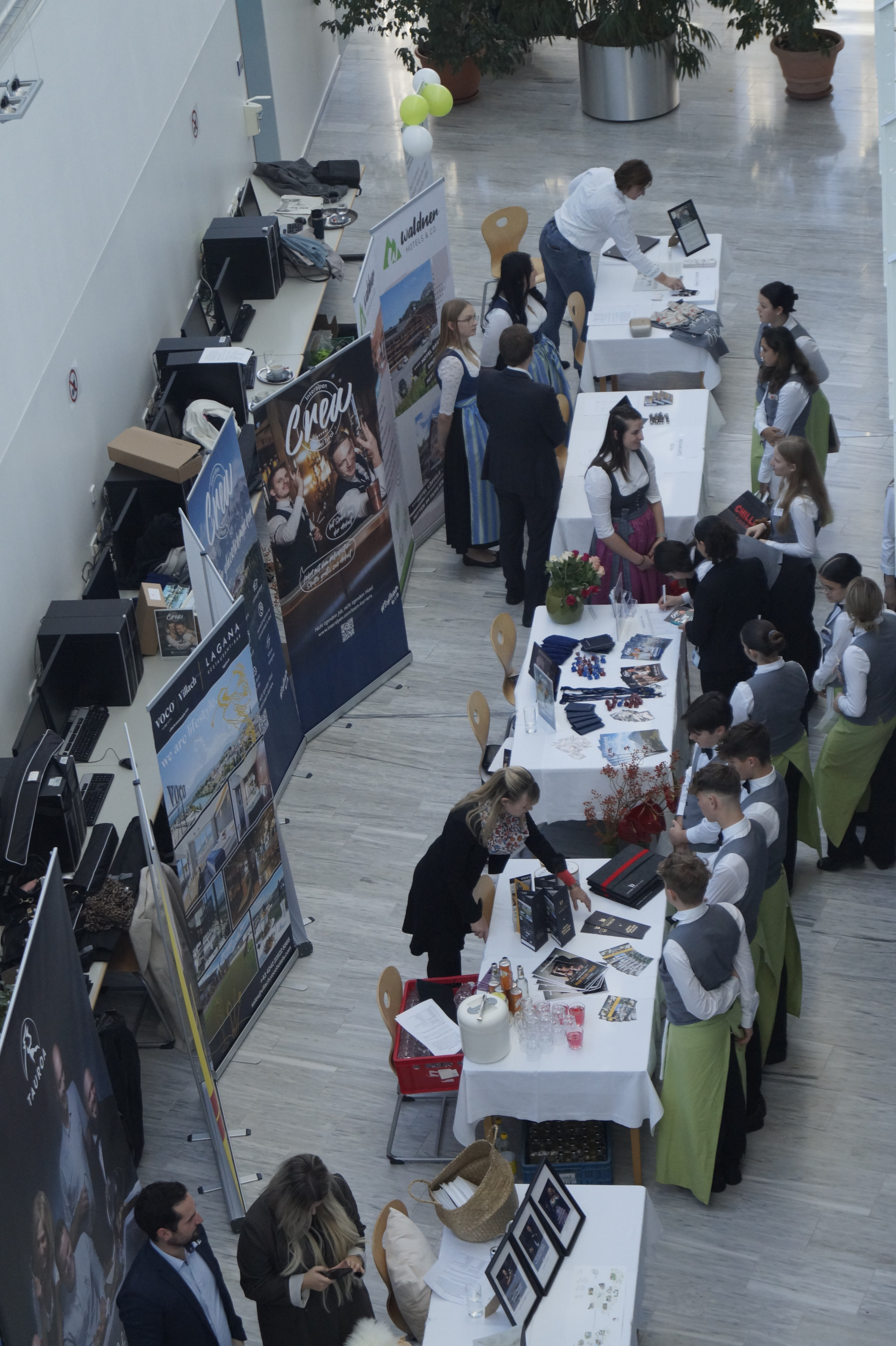 Direktorinnen/Direktoren, Personalleiter:innen von Hotels, Hotelketten, Kreuzfahrtschiffen, Reiseveranstaltern und internationalen Recruiting-Agenturen präsentierten sich einen Tag lang mit kurzen Impulsen und an Info-Ständen den interessierten Schülerinnen/Schülern und Studierenden der KTS. An rund 32 Ständen konnten umfangreiche Informationen über spannende Jobs und Praktika gesammelt und genetzwerkt werden – die ersten Bewerbungen und auch Fixzusagen für Praktika wurden getätigt.