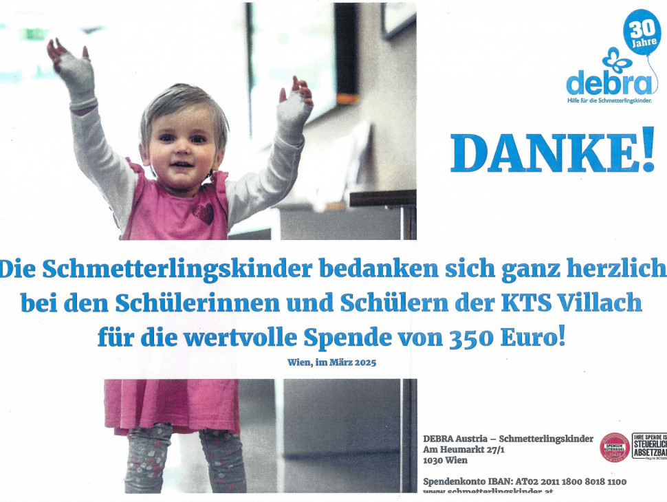 Am Tag der offenen Tür, 12. Jänner 2025 sammelten die 5. Klassen (AB) im Rahmen einer Charity-Aktion für die Schmetterlingskinder.