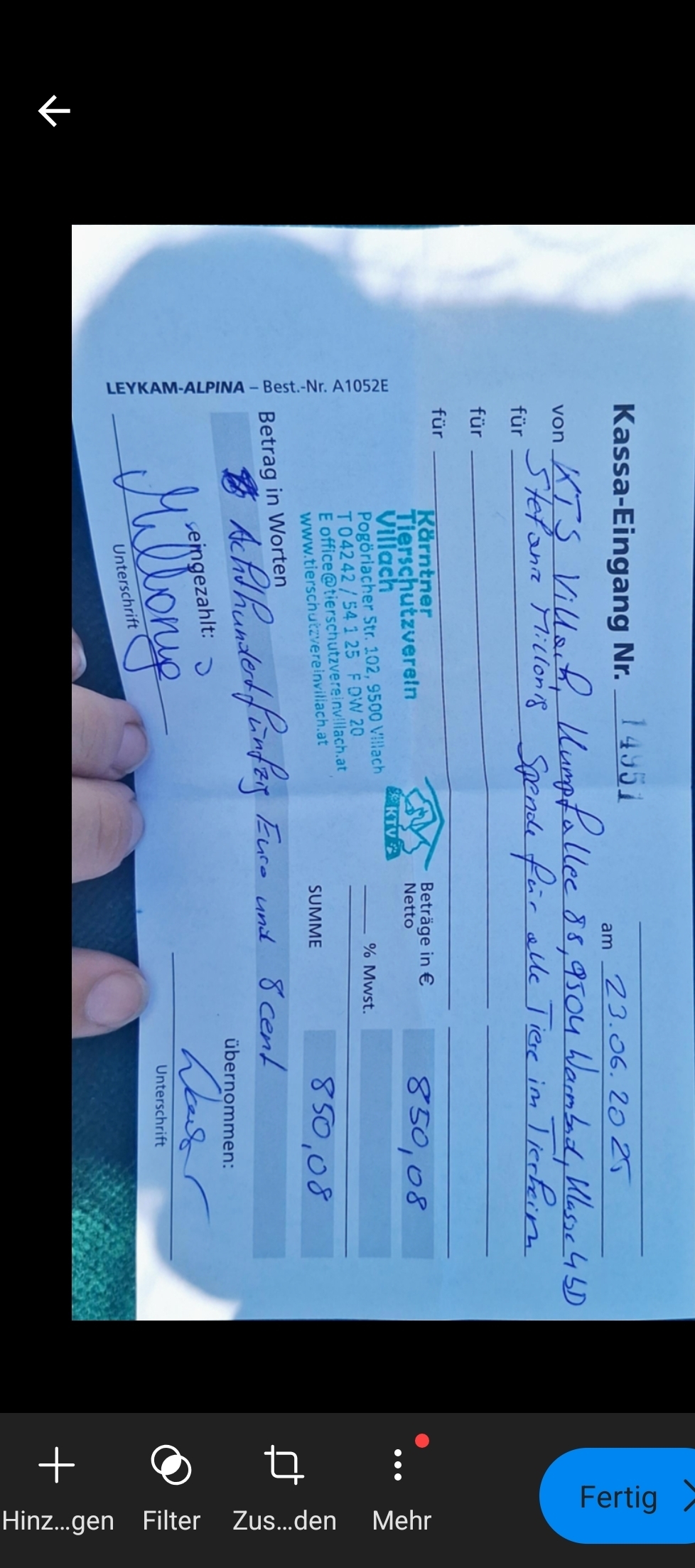 Die Spende für das Tierheim – Sammlung im Atrio durch die 4BT, wurde am 24. Juni überreicht.