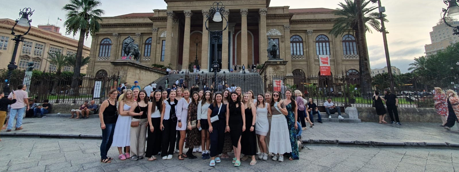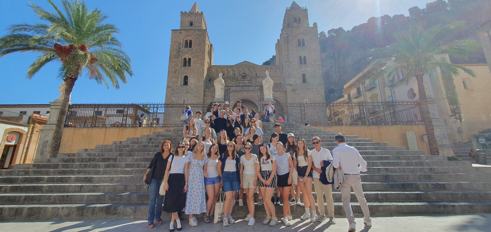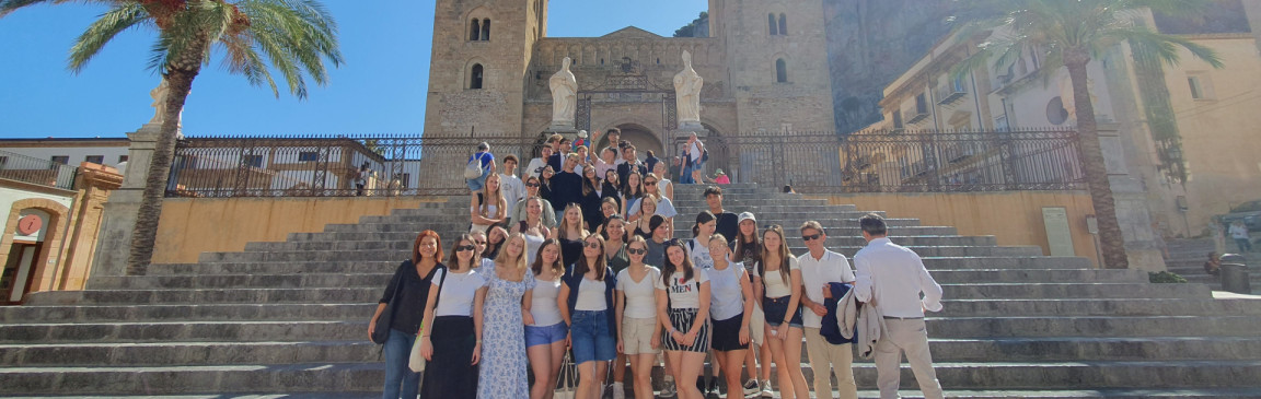 Die Sprachreise der 4BT nach Palermo (Sizilien) fand vom 22.09. bis 27.09. statt und war eine unvergessliche Erfahrung. Während unseres Aufenthalts haben wir nicht nur die italienische Sprache intensiv geübt, sondern auch zahlreiche Sehenswürdigkeiten erkundet. Wir besuchten historische Orte wie die beeindruckende Kathedrale von Palermo, das Teatro Massimo und den Palazzo dei Normanni. Die kulturelle Vielfalt und der mediterrane Flair der Stadt haben uns tief beeindruckt. Neben den Besichtigungen hatten wir auch Zeit, die lokale Küche zu genießen und das italienische Alltagsleben kennenzulernen.