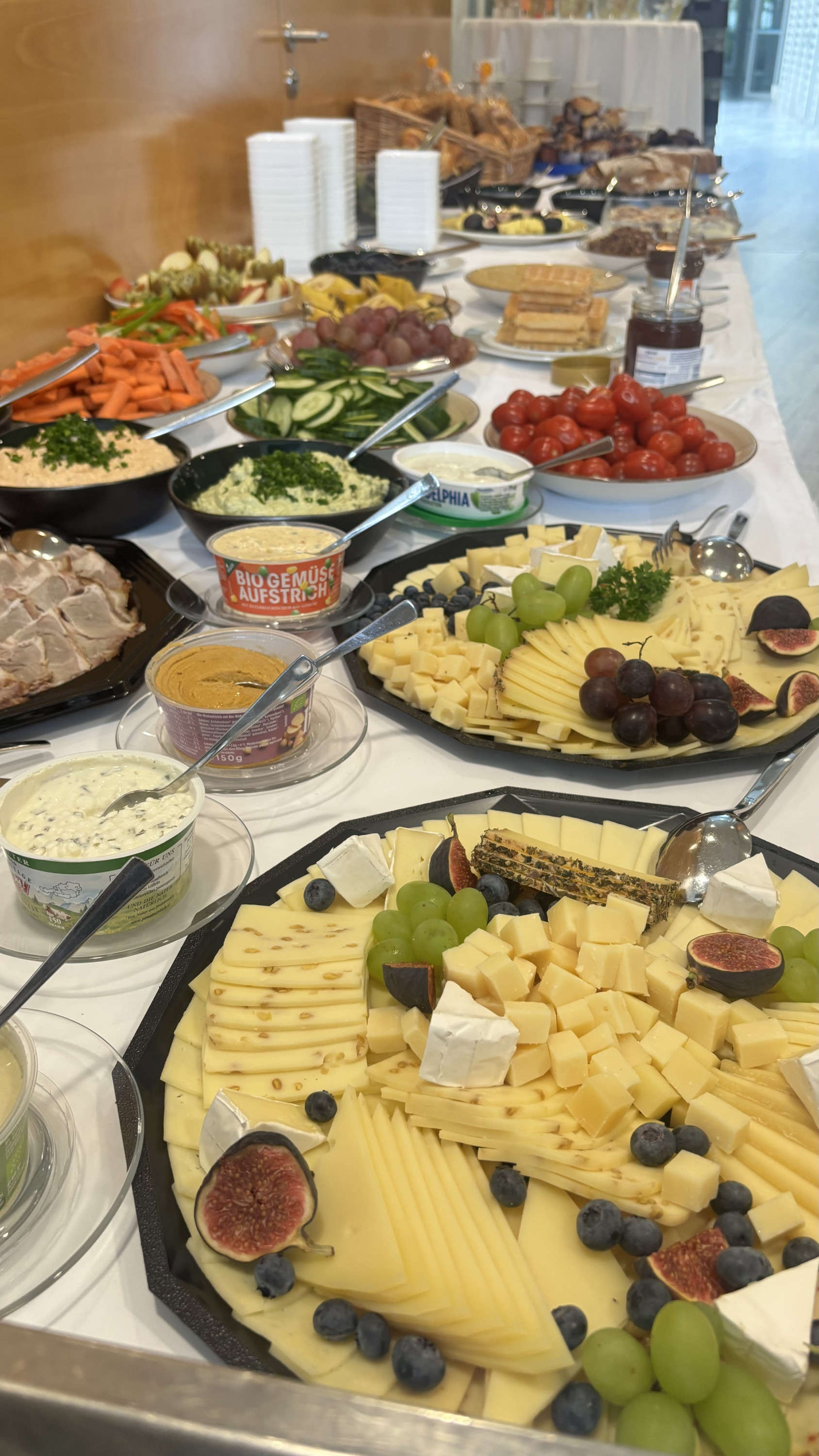 Auch das Frühstück selbst konnte sich sehen lassen: Obst- und Gemüseplatten, Käse- und Wurstplatten, Croissants, Marmelade, Aufstriche, Mehlspeisen, Waffeln und verschiedene Säfte standen bereit.