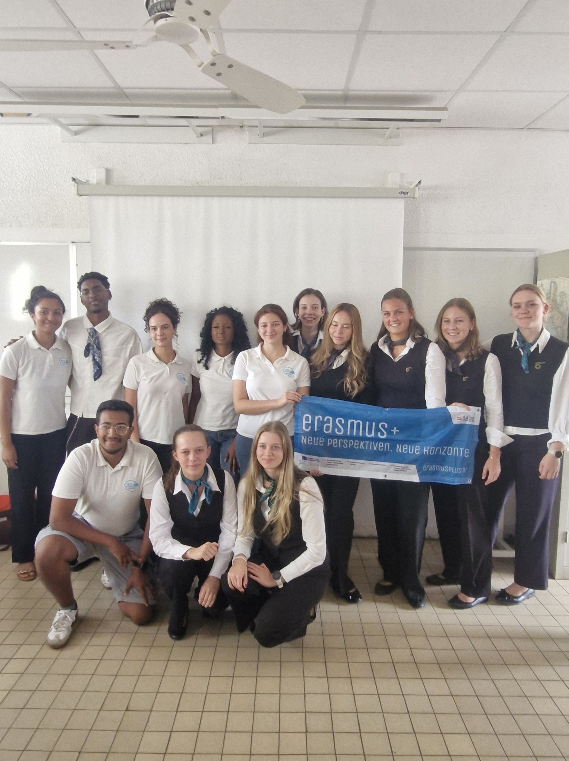 Dazu ein kurzer Bericht: An unserer neuen Partnerschule BTS Tourisme Reunion präsentierten wir in französischer und deutscher Sprache die wichtigsten Informationen über Österreich, Kärnten und Villach. Gemeinsam mit den Klassen der besuchten Schule wurden Fragebögen bearbeitet, anhand welcher wir herausfanden, was auf der Insel über Österreich bekannt ist und was die dortigen Bewohner:innen mit Österreich verbinden. Die SchülerInnen der dortigen Schule zeigten uns ihre Schule und ihre Stadt. Außerdem stellten sie uns in einer Präsentation ihre Insel in all ihren unglaublichen Facetten vor. Wir entdeckten im Laufe der Woche neue Orte, lernten die Kultur und Menschen kennen und konnten unser Französisch in echten Alltagssituationen anwenden. 💬🤝