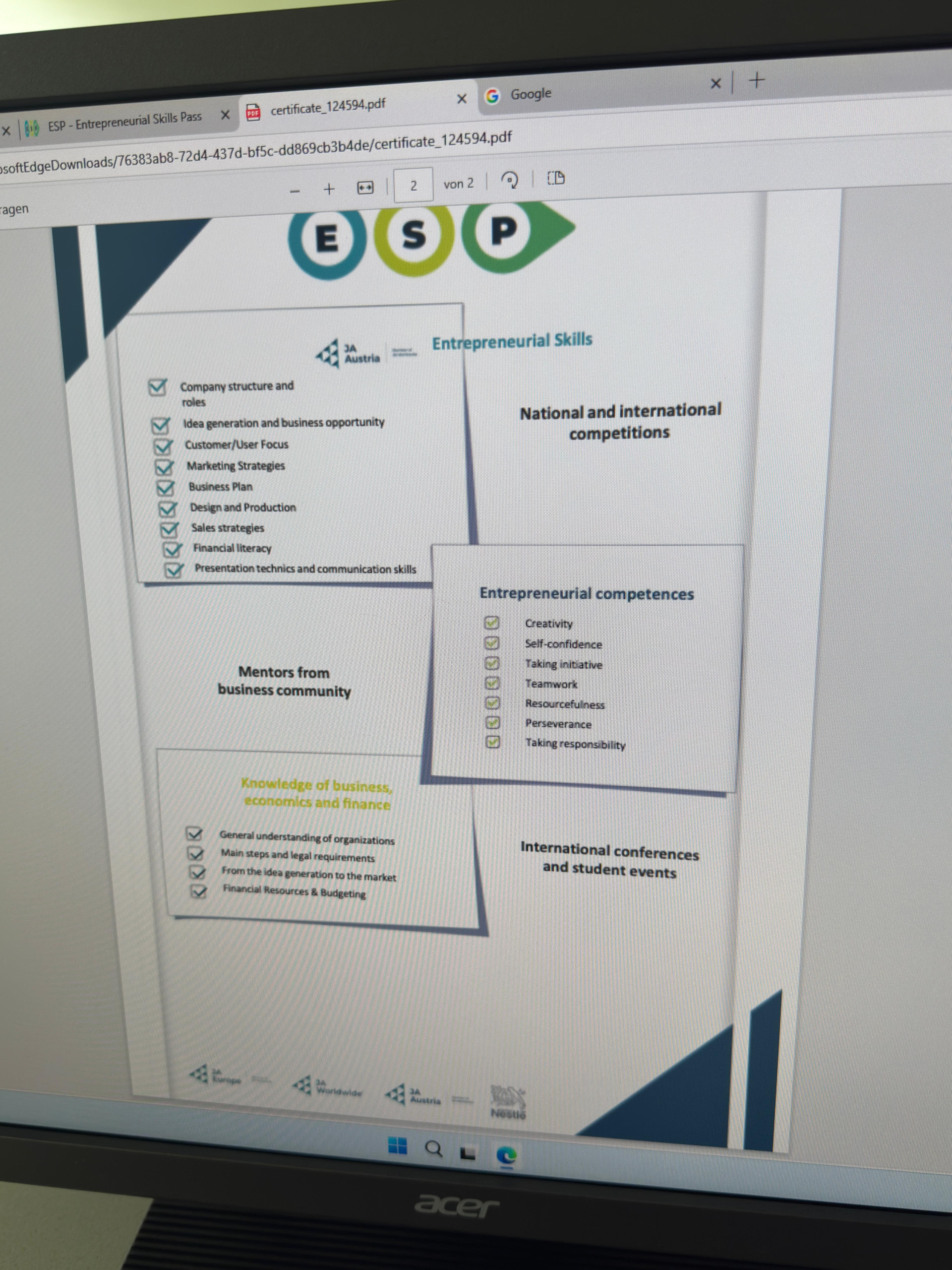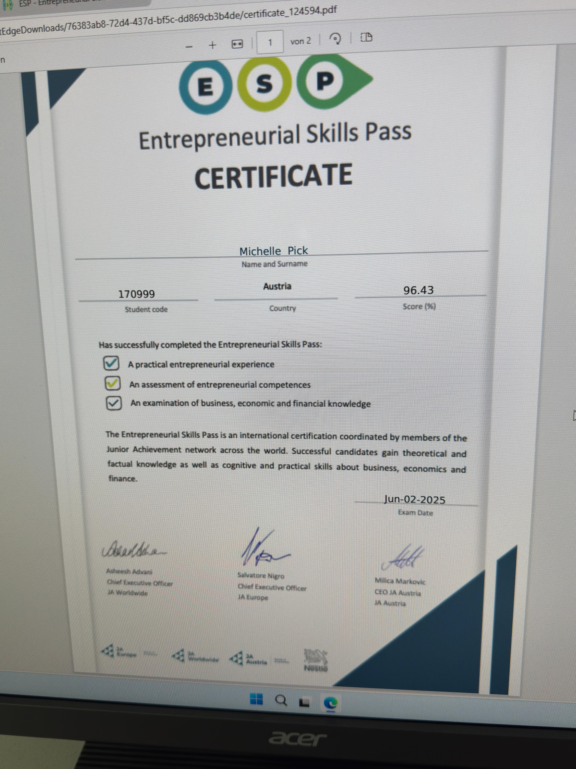 Der Entrepreneurial Skills Pass  ist ein EU-gefördertes und international anerkanntes Zertifikat, das unternehmerische Kompetenzen von Jugendlichen offiziell bestätigt.