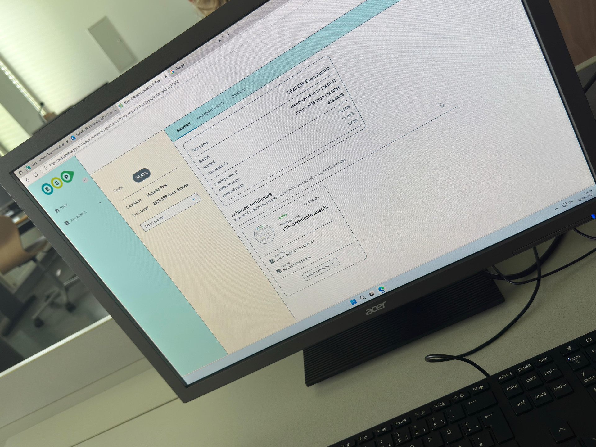 Der ESP wird von den Juniors im Rahmen der Zusatzqualifikation „Entrepreneurship and Award Management“ absolviert und bildet damit ihren offiziellen Abschluss. So machen sie ihre unternehmerischen Erfahrungen nicht nur sichtbar, sondern auch messbar. Die Absolvierung der ESP-Prüfung ist ein großer Schritt für die jungen Unternehmer:innen. Mit dem Entrepreneurial Skills Pass erhalten sie einen wertvollen, europaweit anerkannten Schlüssel für ihre Zukunft.