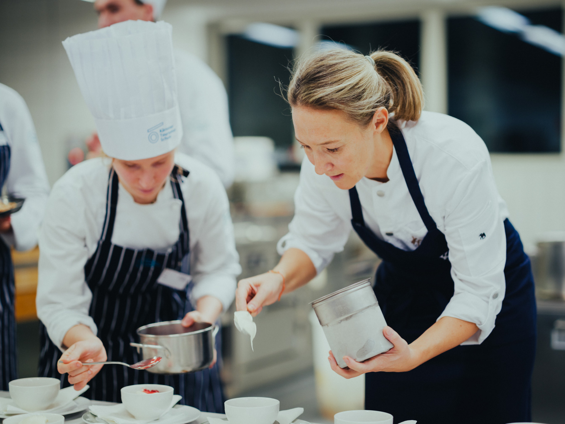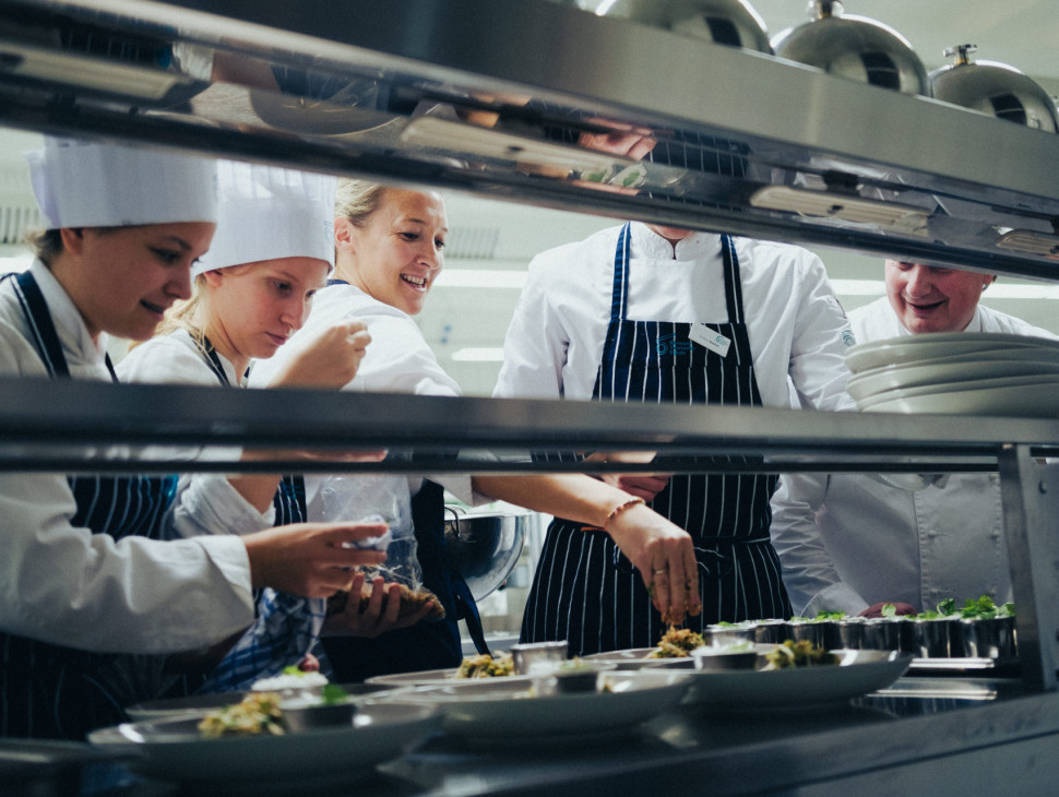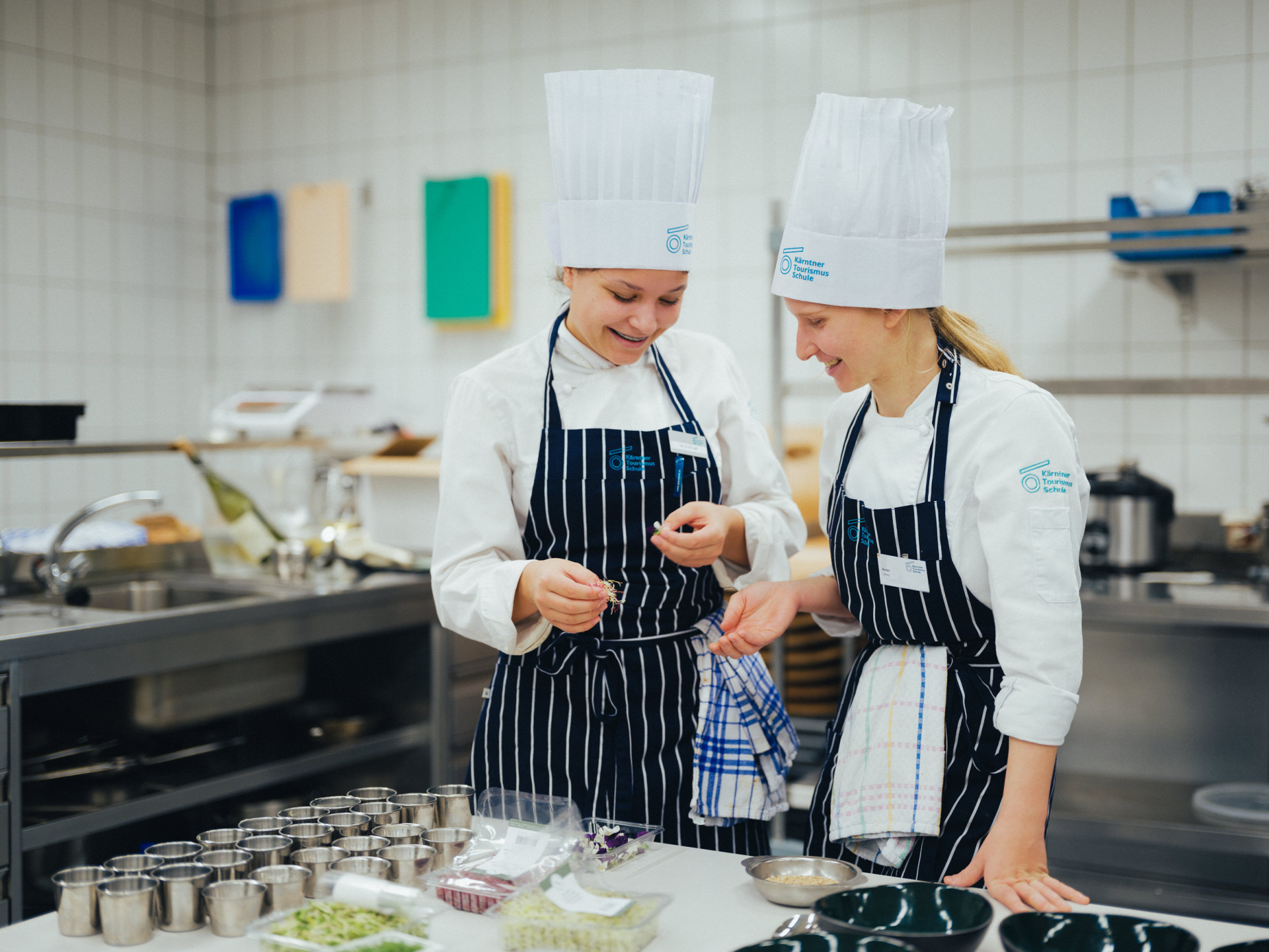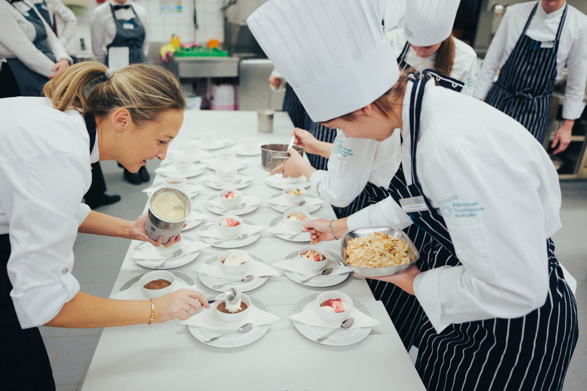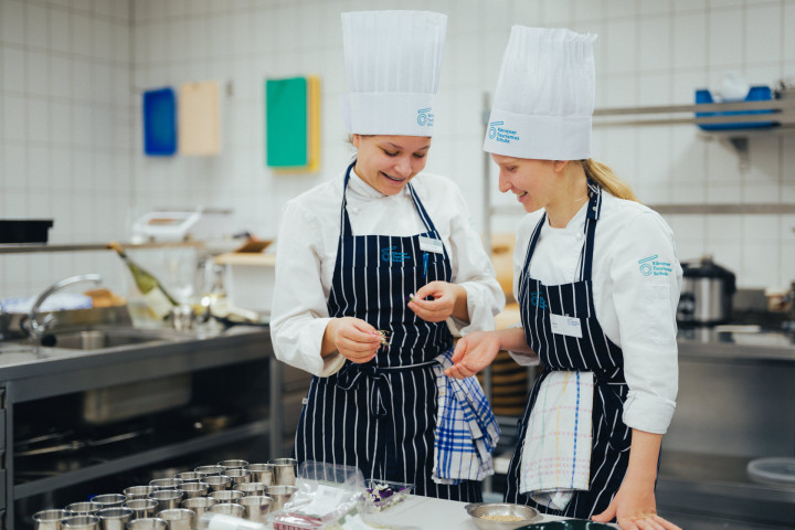 Bilder sagen mehr als Worte! Und die Fotos zeigen, dass es wirklich ein großartiger Abend im Restaurant Wintergarten war: Privatköchin Kathrin Peczelt, Absolventin der KTS, war begeistert von der Idee, mit der 4AT1 im Rahmen des Abendrestaurants zu kochen. Jedes Jahr dürfen wir Gastköchinnen und Gastköche zu speziellen „Back to the roots“ – Abenden im Haus willkommen heißen.