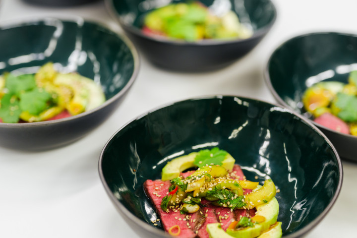 Aufgetischt wurden eine „Leichte Suppe vom Butternusskürbis mit Ingwer und Kokos, Thai Beef Salad, gegrilltes Seeforellen-Filet mit Thai Kräutern und zum Abschluss ein Schokoküchlein mit flüssigen Kern und Vanilleeis“