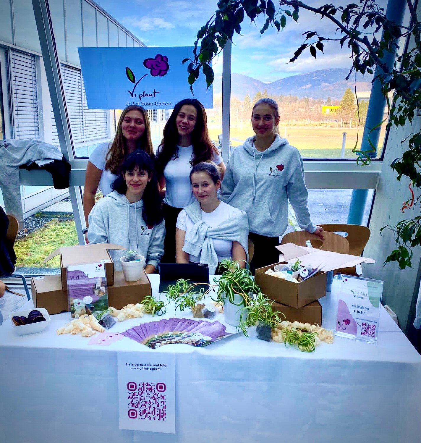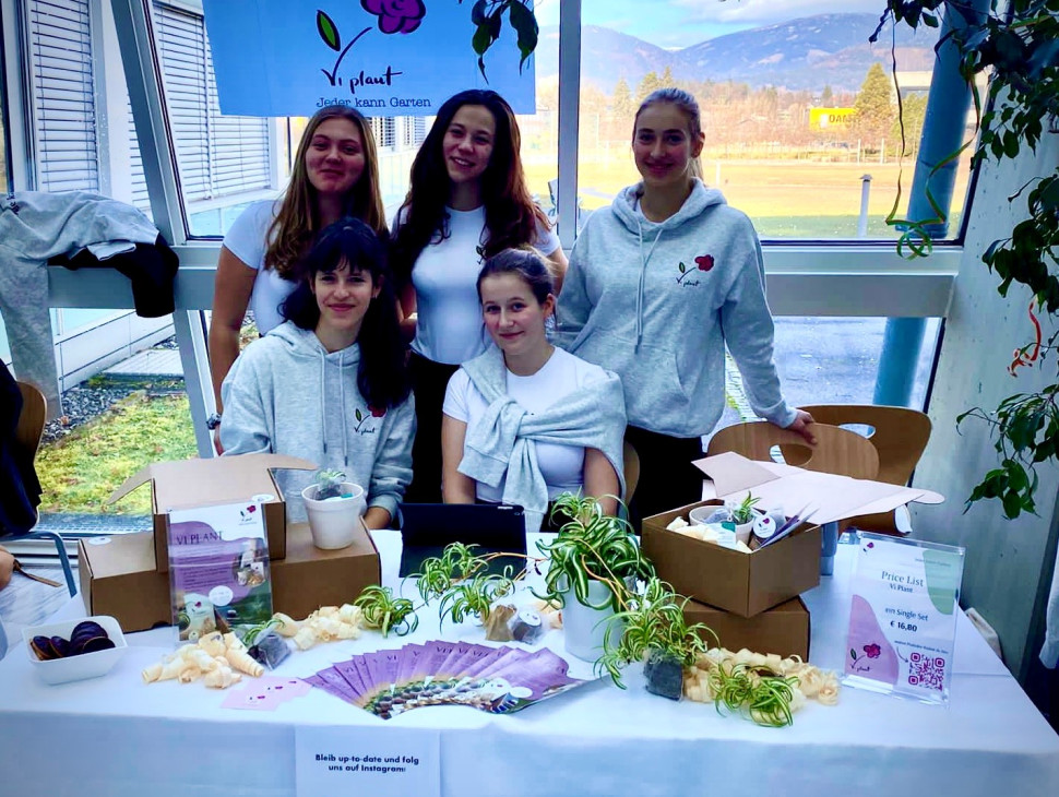Vi Plant wurde im Rahmen des Wahlpflichtfachs von Paula, Cäcilia, Alena, Mara und Johanna (4ABT) im September gegründet und vertreibt unter dem Motto „Jeder kann Garten“ Jungpflanzen im Baukastensystem mit selbst hergestellter Erde. Nachhaltigkeit, gesunde Raumluft und Regionalität stehen dabei im Vordergrund.