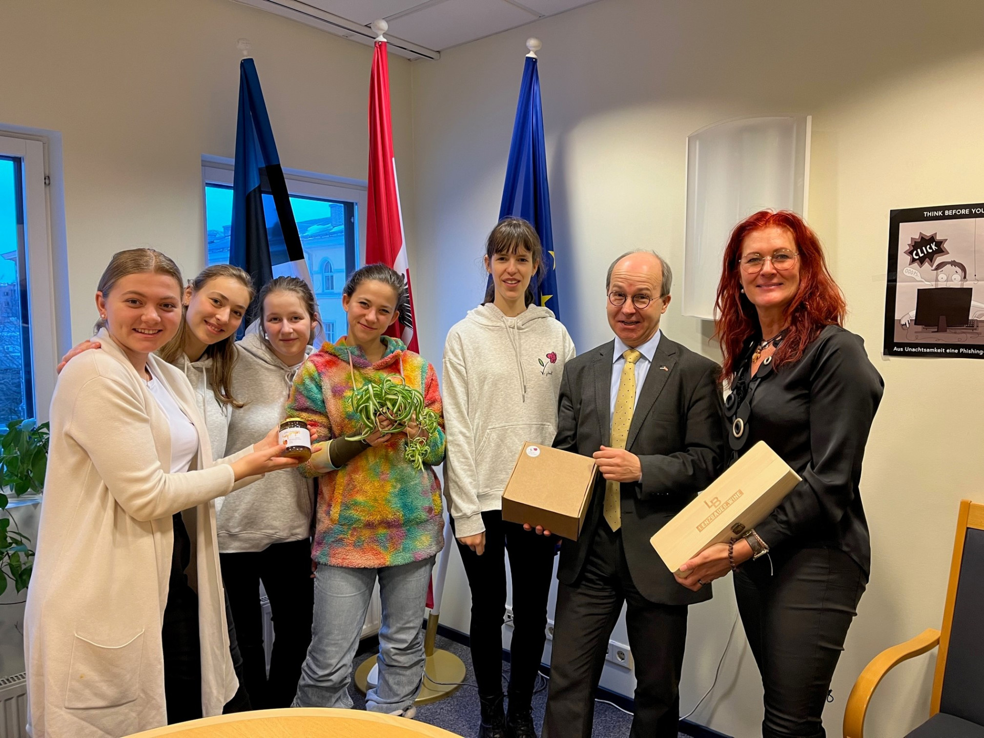 Bei einem Zwischenaufenthalt in Tallin wurden wir vom österreichischen Botschafter (Mag. Mikl – ein Kärntner) in der Botschaft empfangen und dann ging es weiter nach Tartu zur internationalen Handelsmesse und dem Pitch Wettbewerb.