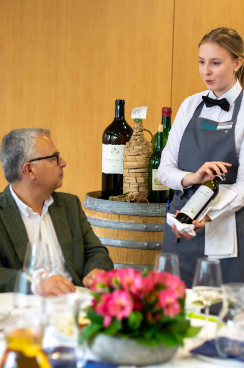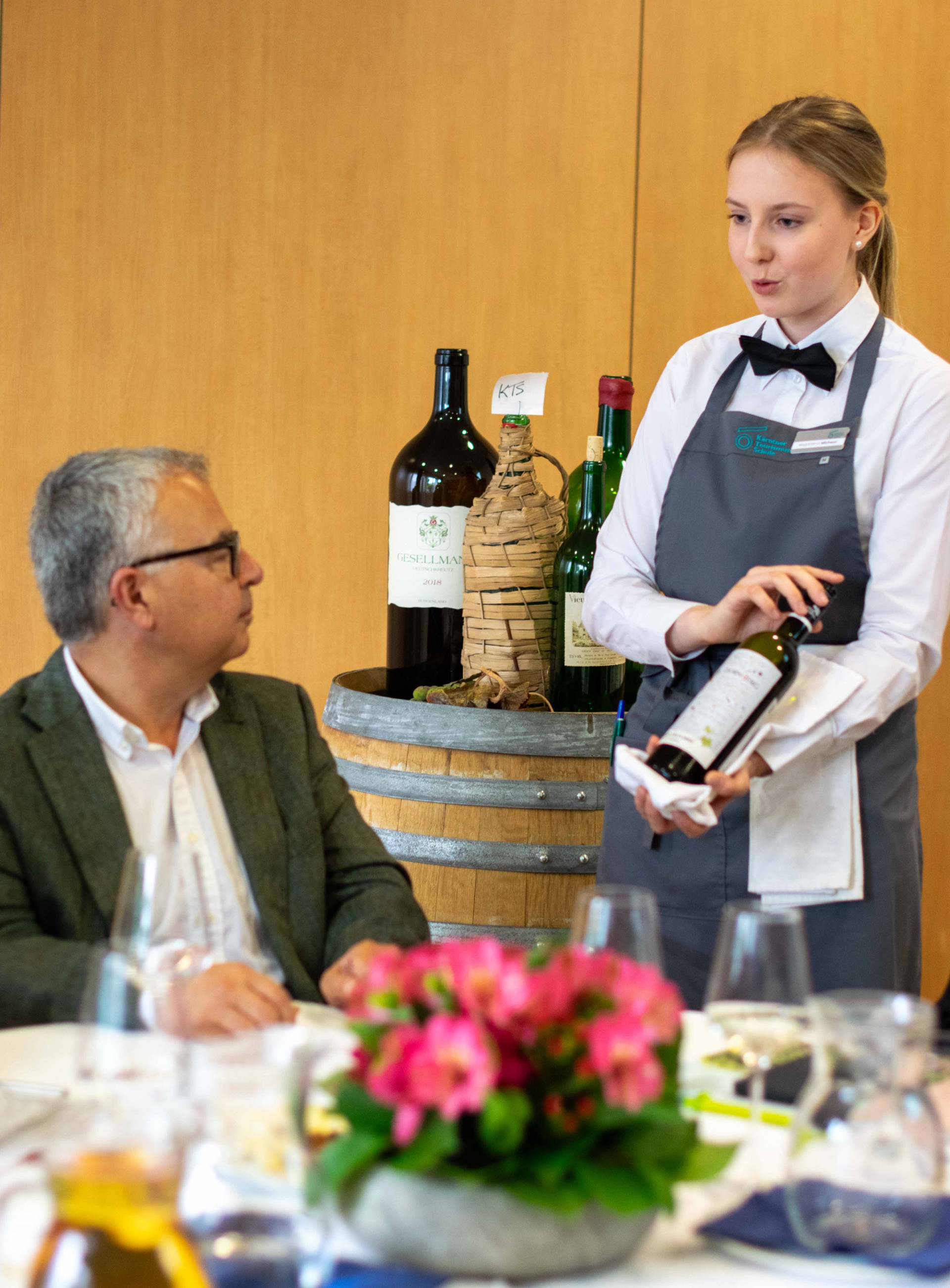 Den Abschluss bildete eine praxisorientierte Prüfung vor einer Fachjury. Hier zeigten die Teilnehmer:innen im Fachgespräch ihr profundes Fachwissen und beantworteten gezielte Fragen rund um die Weinkunde. Außerdem bewiesen sie beim klassischen Weinservice ihr professionelles Auftreten und ihre handwerklichen Fähigkeiten im Umgang mit Wein – vom richtigen Einschenken bis hin zur Beratung von Gästen.