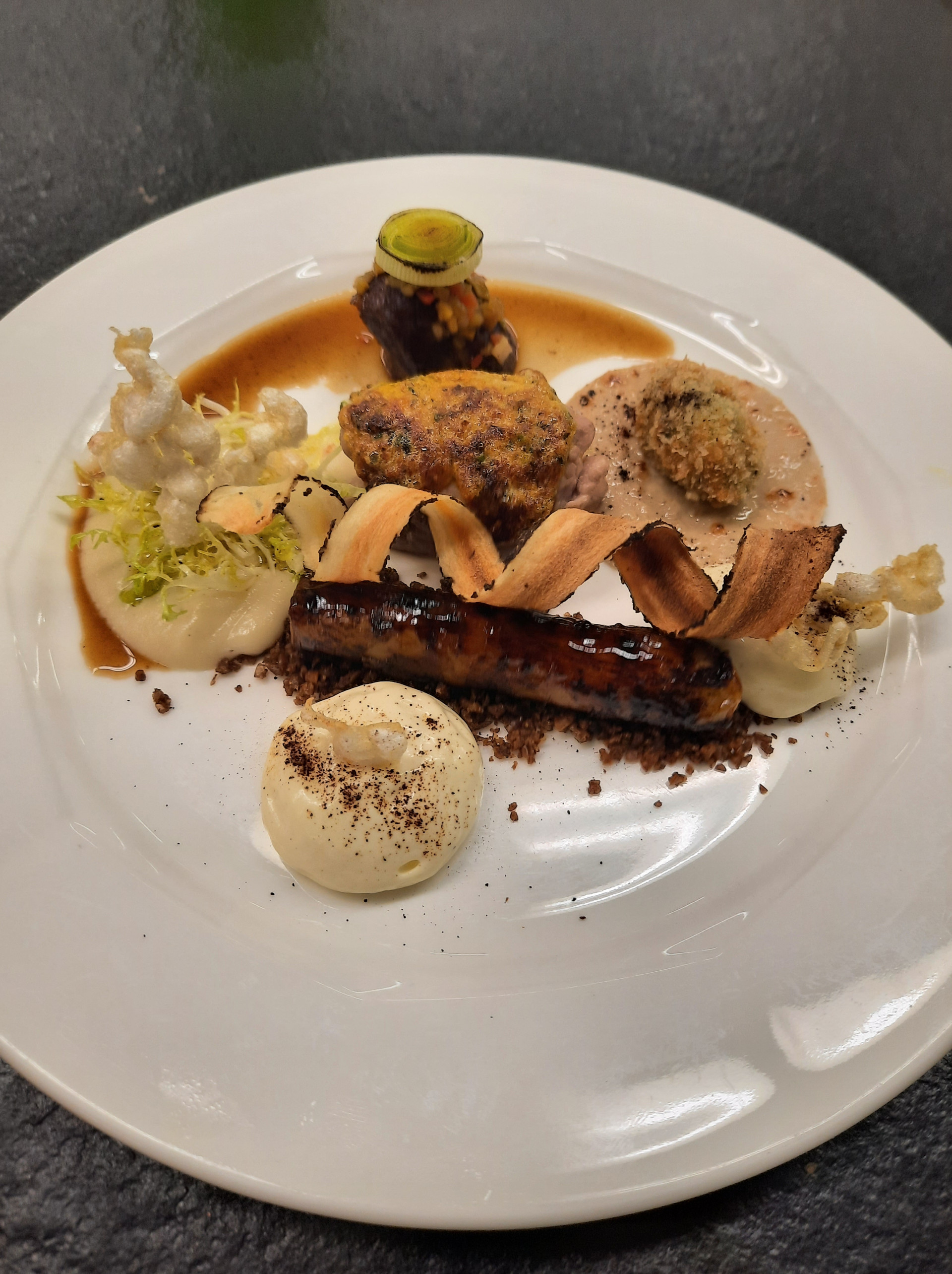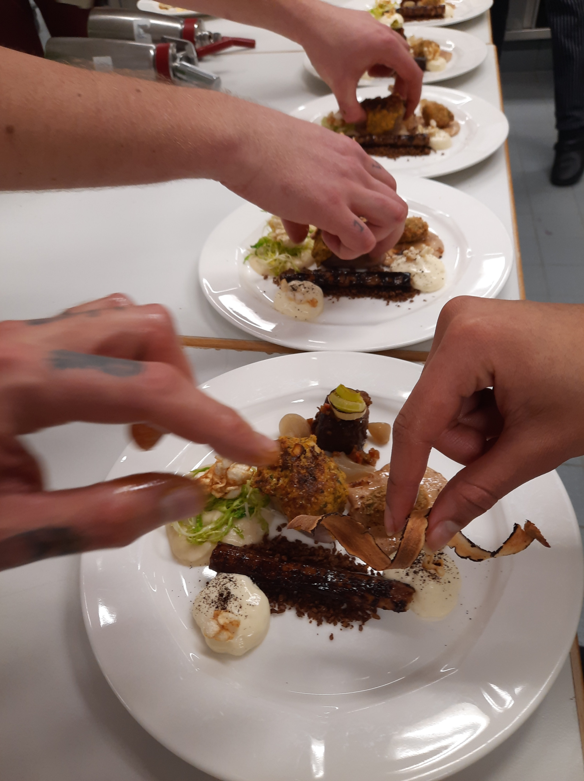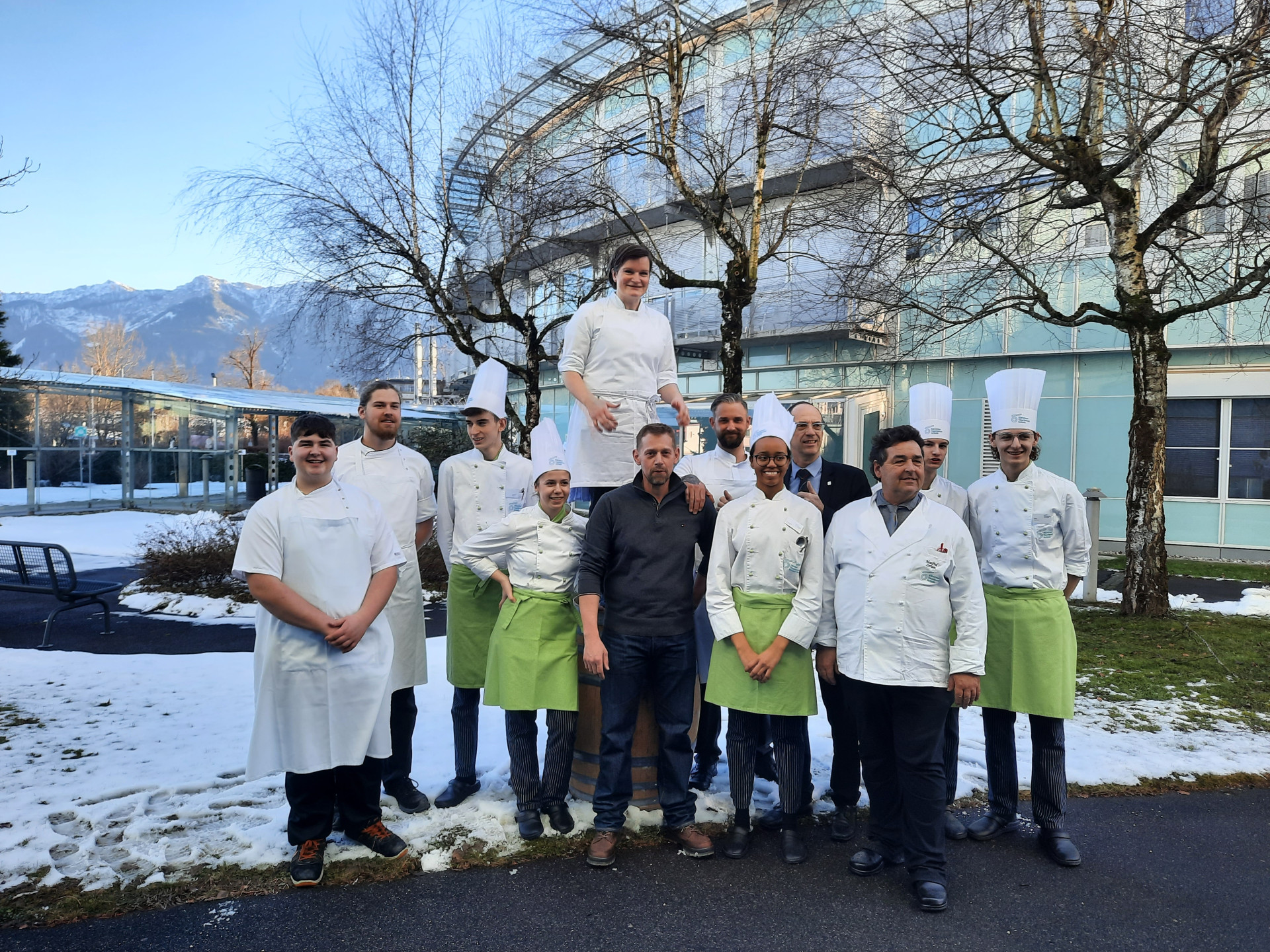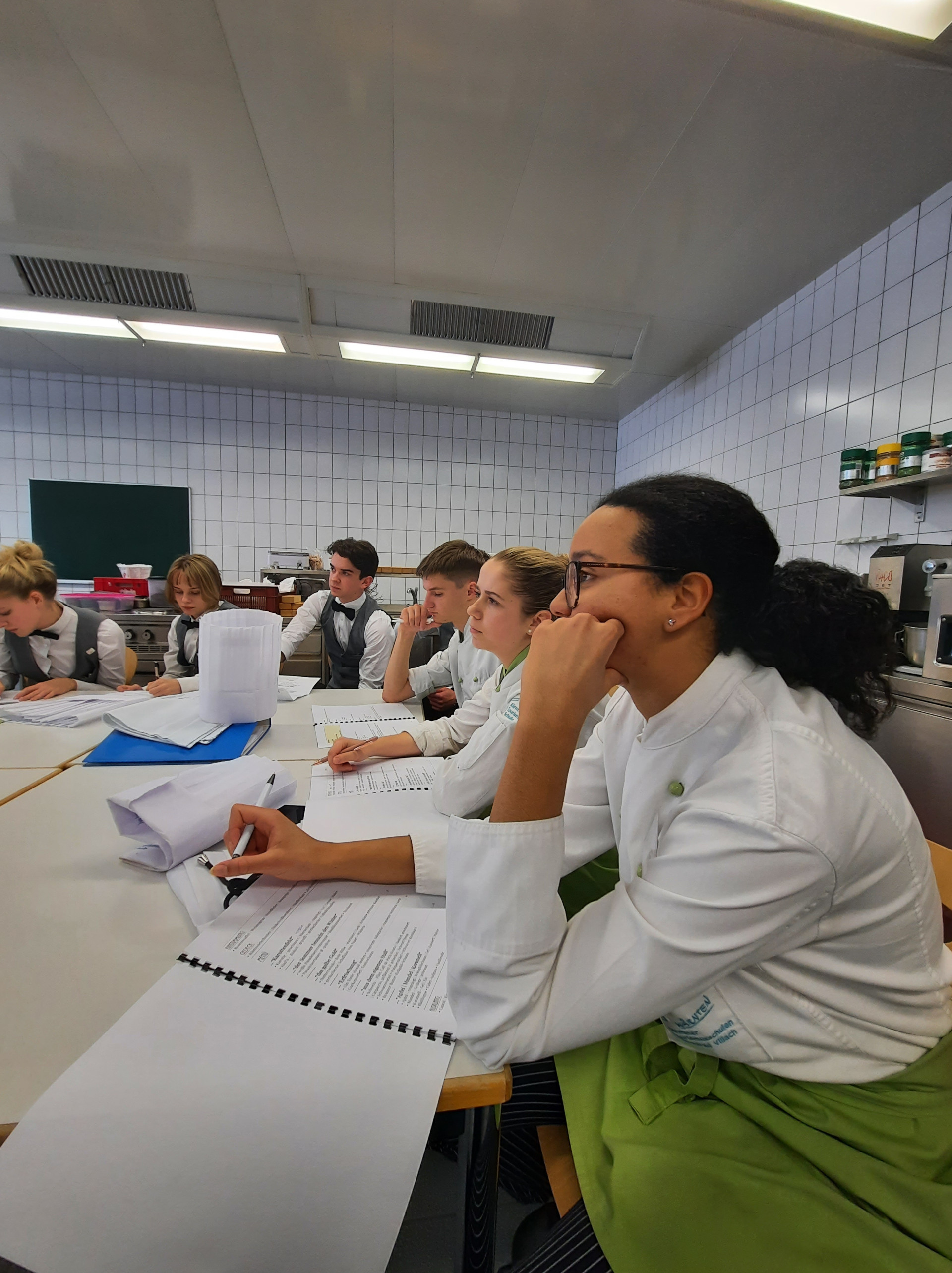Die Schüler:innen konnten sich ein Bild über die anspruchsvollen Arbeitstechniken, aber auch die großartige Unternehmensphilosophie in dieser hohen Klasse der Küchenkunst machen. Der Jahreszeit entsprechend werden nur Produkte verwendet, gewachsen im Kreislauf der Natur – teils aus dem eigenen Garten, der eigenen Landwirtschaft oder von einheimischen Produzentinnen und Produzenten und ausgewählten Lieferanten.