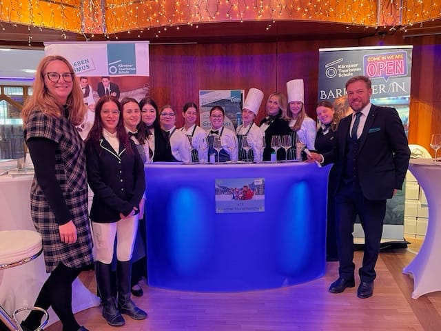 Spannende Vorträge, aktuelle Informationen und inspirierende Gespräche konnte das Tourismuskolleg (3. Sem.) am Kärntner Tourismustag 2024 im Casineum Velden erleben. Die 5CT hat am „KTS-Messe-Stand“ die Gäste mit ihrem charmanten Einsatz mit Fischbrötchen und Gincocktails verwöhnt.