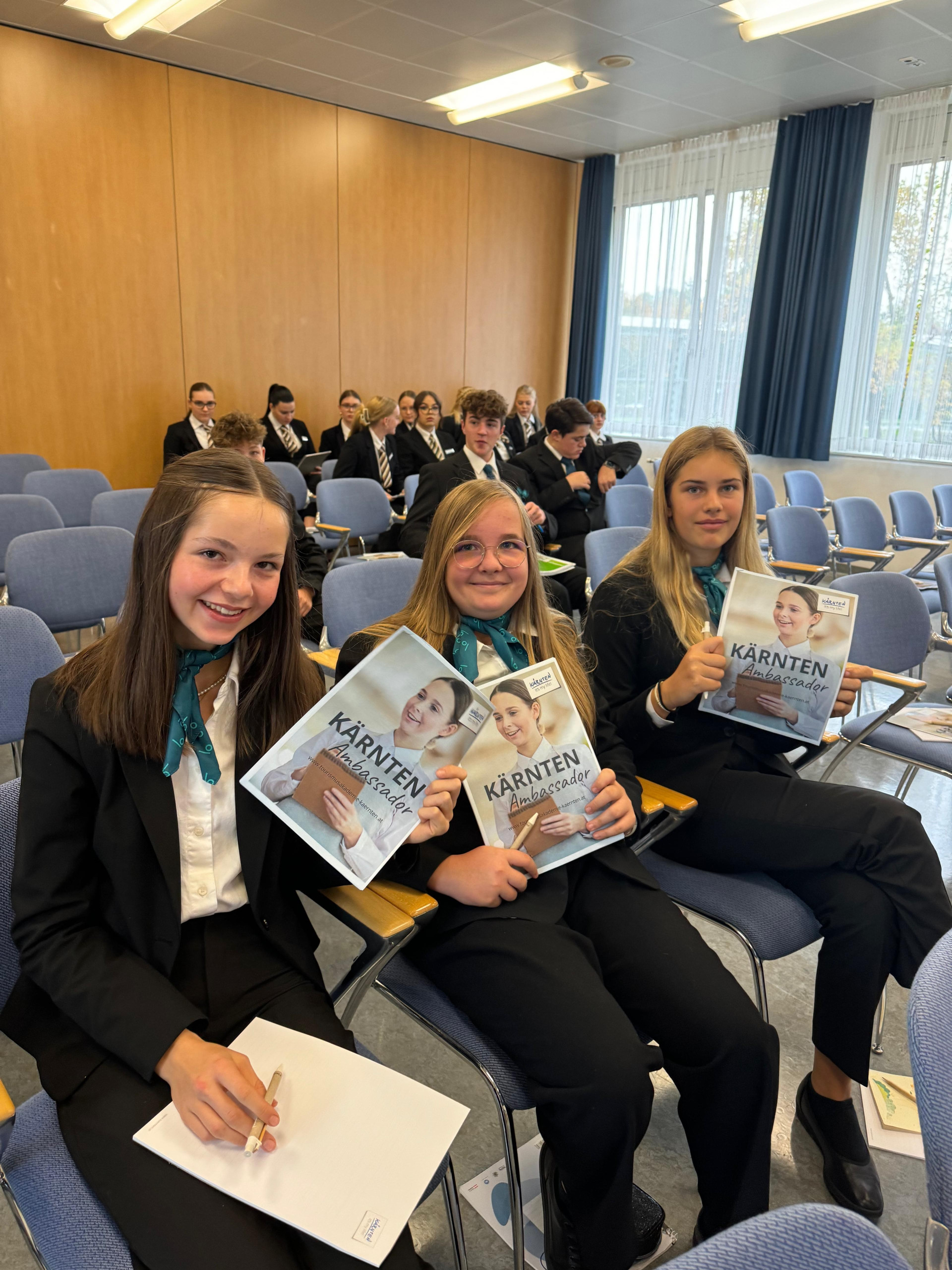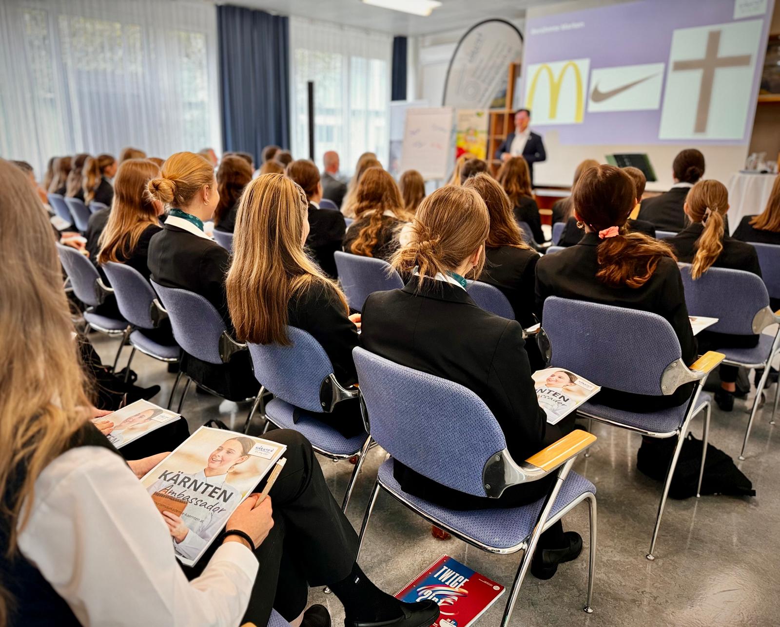 Bereits nach sechs Wochen an der KTS starten unsere 1. Klassen dieses Jahr neu mit dem Zertifikat „Kärnten Botschafter„. Gecoached vom Team der Tourismusakademie der Kärnten Werbung erarbeiten die jungen Tourismusschüler:innen die Kernwerte der Marke Kärnten. So sind sie schon vor dem ersten Praktikum echte Kärntenexpertinnen und -experten.