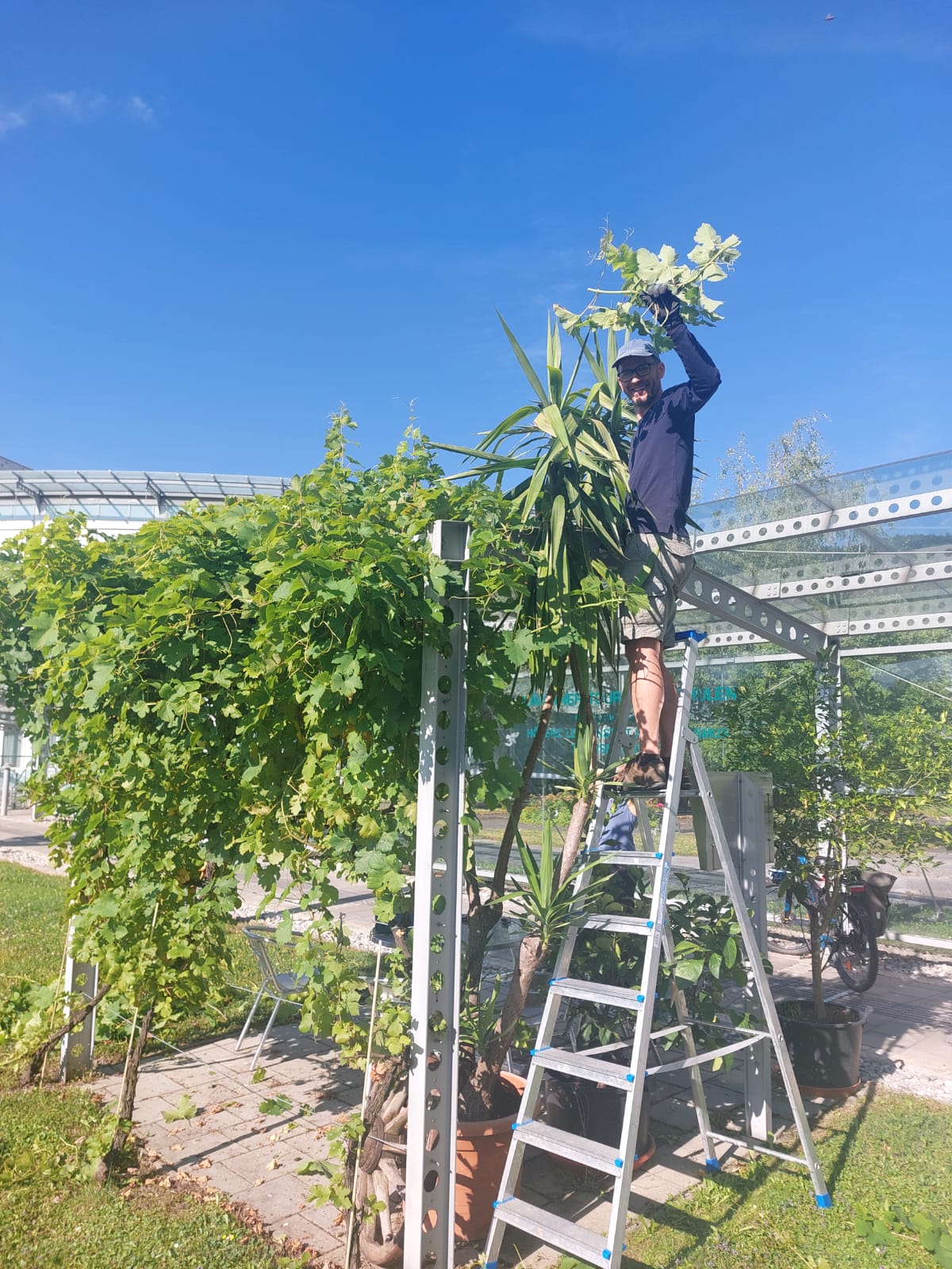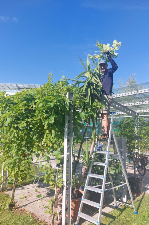 Und… damit wir eine tolle Lese im Herbst haben, muss auch im Sommer etwas gemacht werden. Jetzt stehen zB. gerade Wipfeln und Ausgeizen an.