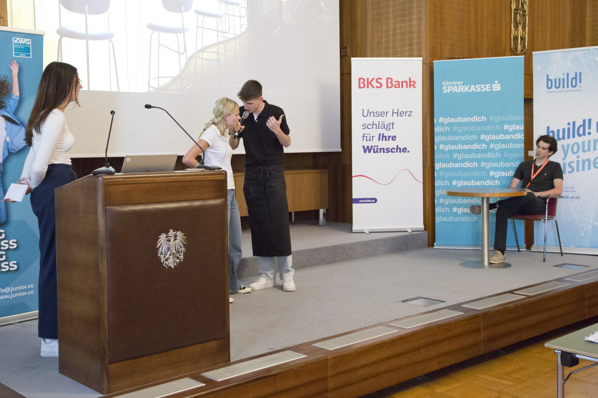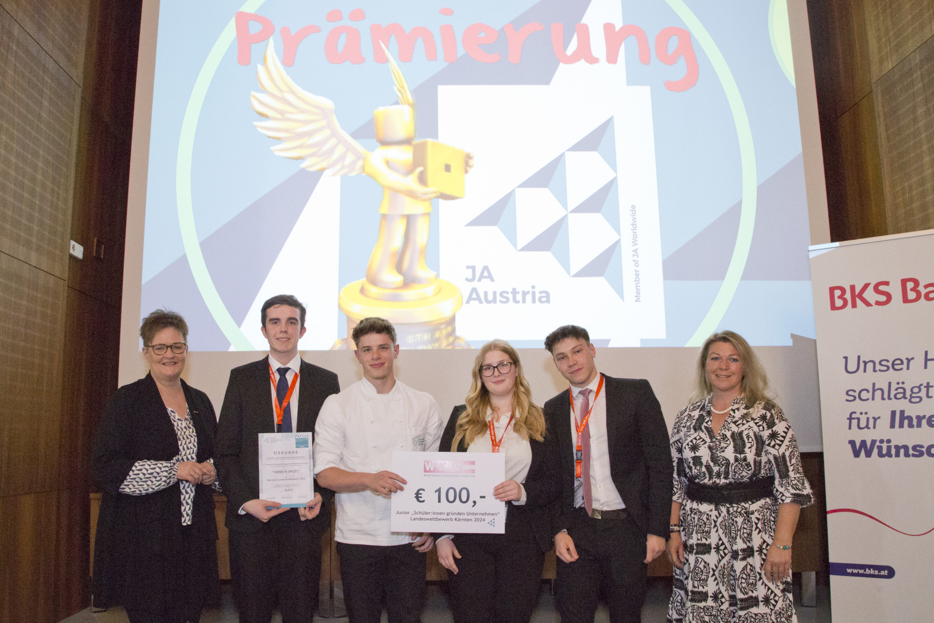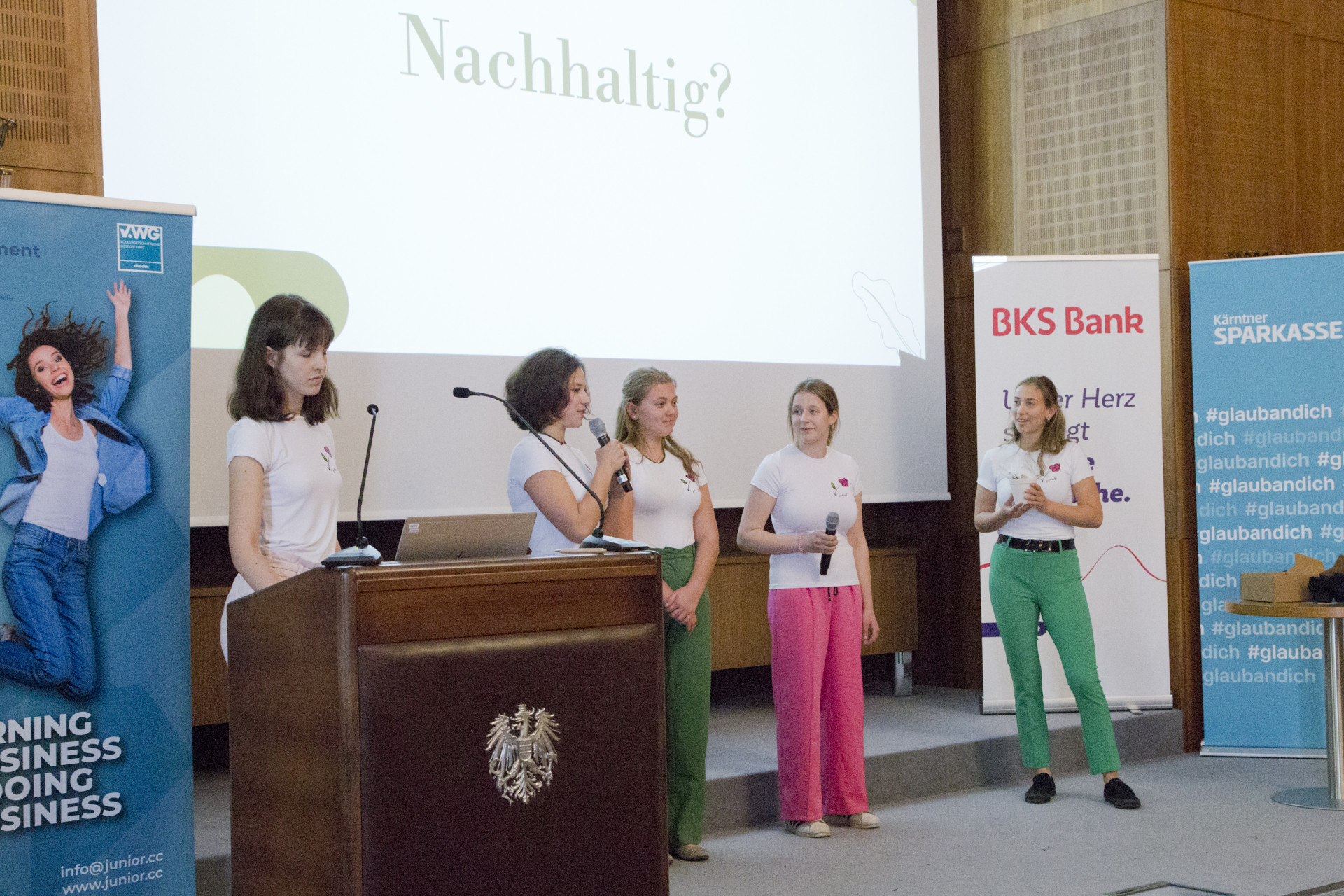 Am 30. April fand in der Wirtschaftskammer Klagenfurt der Kärntner Landeswettbewerb der Junior Achievment Austria (Junior Companies) – organisiert von der Volkswirtschaftlichen Gesellschaft – statt. Neben dem abgegebenem Geschäftsbericht, Jury-Interview und den Verkausgesprächen am Messestand floß auch die Präsentation bzw. der Live-Pitch in die Bewertung der 6-köpfigen Jury ein.