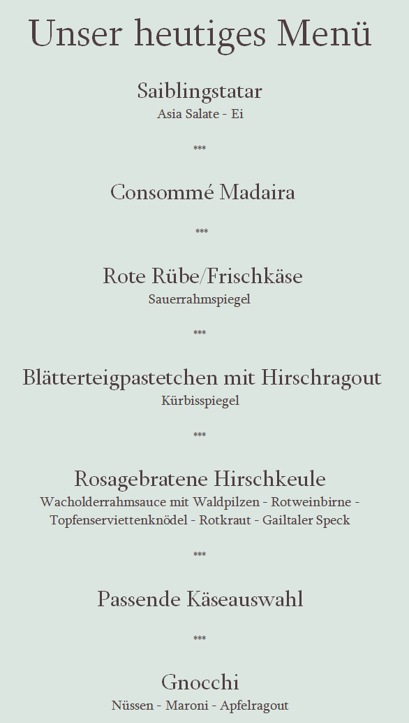 Am Donnerstag, dem 23.11.2023 fand ein Wildbret-Dinner als Kooperation zwischen der Kärntner Tourismusschule und der Kärntner Jägerschaft statt. Beide Veranstalter vertreten an diesem Abend einen gemeinsamen Standpunkt: Wildbret ist Teil der gehobenen Küche. Davor konnten einige Schüler:innen an einem Zerwirkkurs am Dienstag, 21.11.2023 im Schloss Mageregg teilnehmen.