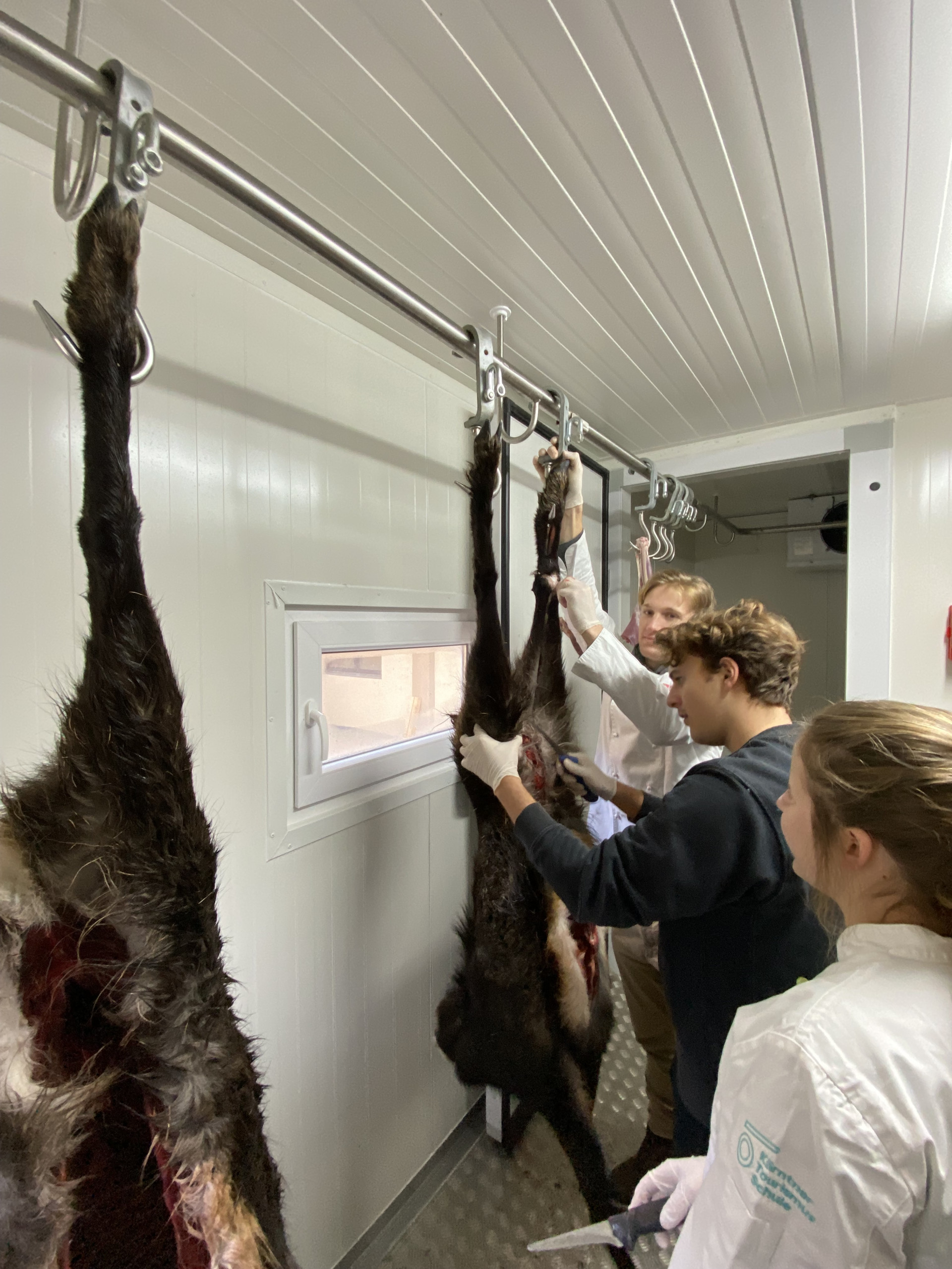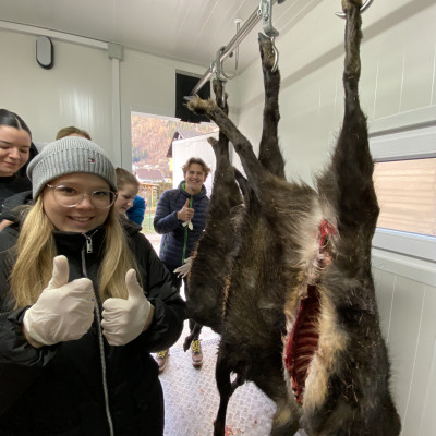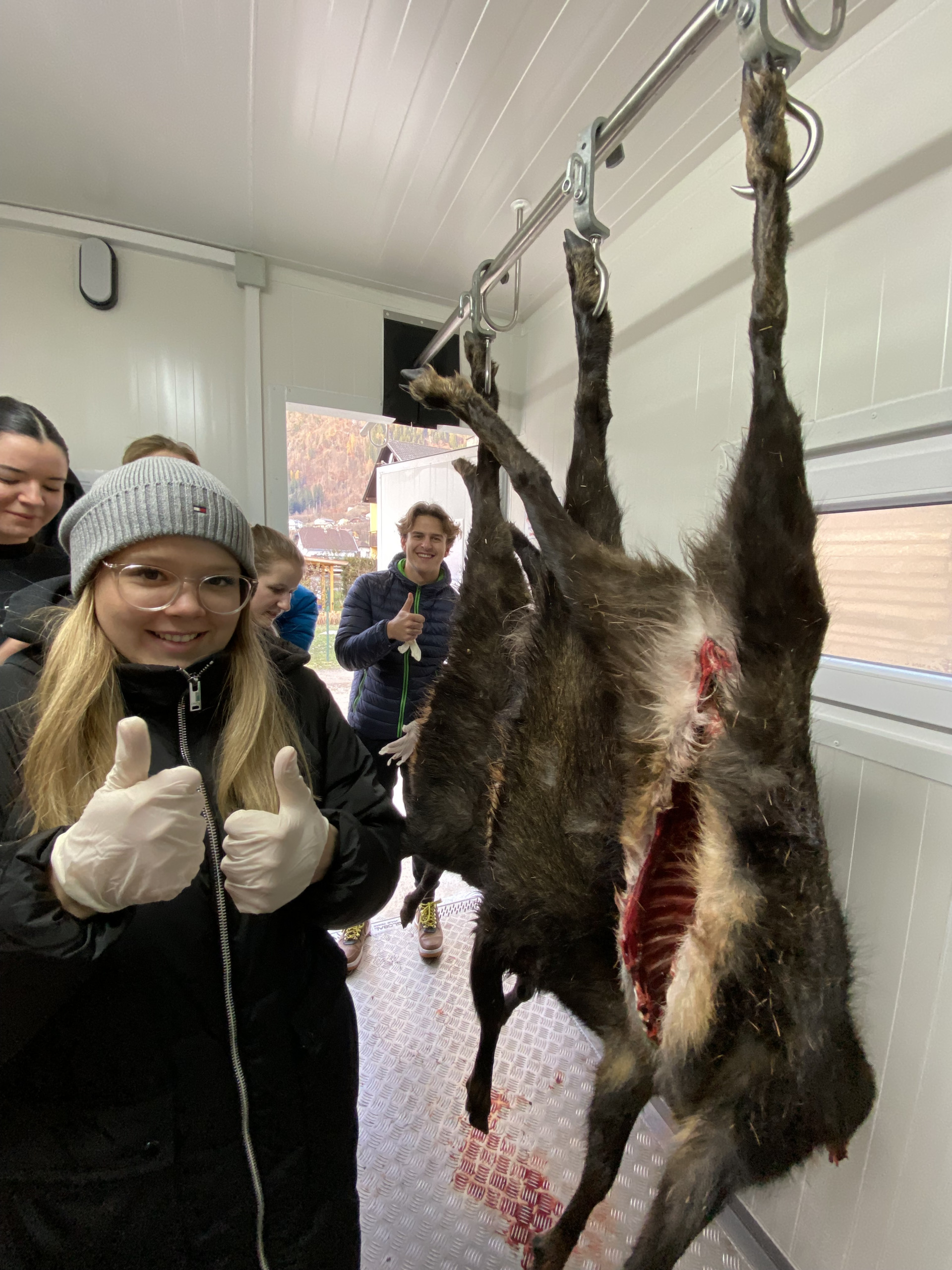 Am Montag, dem 27.11. erfolgte die Fortsetzung vom Zerwirkkurs mit der Kärntner Jägerschaft. Die Schüler:innen konnten das Erlernten, selbst umsetzen und Hand ans Wild anlegen. Eine tolle Erfahrung da das zerlegte Wild gleich danach verkostet wurde. Dies ermöglichten dankenswerter Weise Christoph und Margaretha Lampersberger, die das Gasthaus Lampersberger in Sachsenburg zusammen leiten, wo das Wild, dann auch gleich auf den Teller kam.