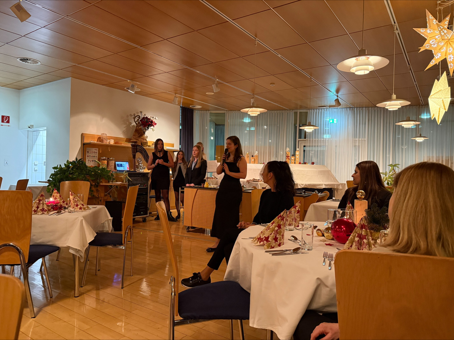 Die heurige Weihnachtsfeier wurde von einigen Internatsschüler:innen sehr feierlich gestaltet. Ein wunderbares Weihnachtsmenü wurde in der Betriebsküche liebevoll zubereitet und im stimmungsvollem Ambiente gemeinsam genossen.