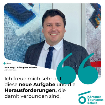 SchulblogChristopher Winkler – neuer Administrator Veröffentlicht am 13. November 2023 (aktualisiert am 15. November 2023)Wir begrüßen in unserem KTS Team – seit 01. November in neuer Position – Christopher Winkler unser neuer AdministratorKontaktdaten und Details auf unserer Website in der KTS Family.SchlagwörterAdministration, Schuljahr 2023/24 Nächster Beitrag: Career Day 2023 Vorheriger Beitrag: Teambuilding 1BT