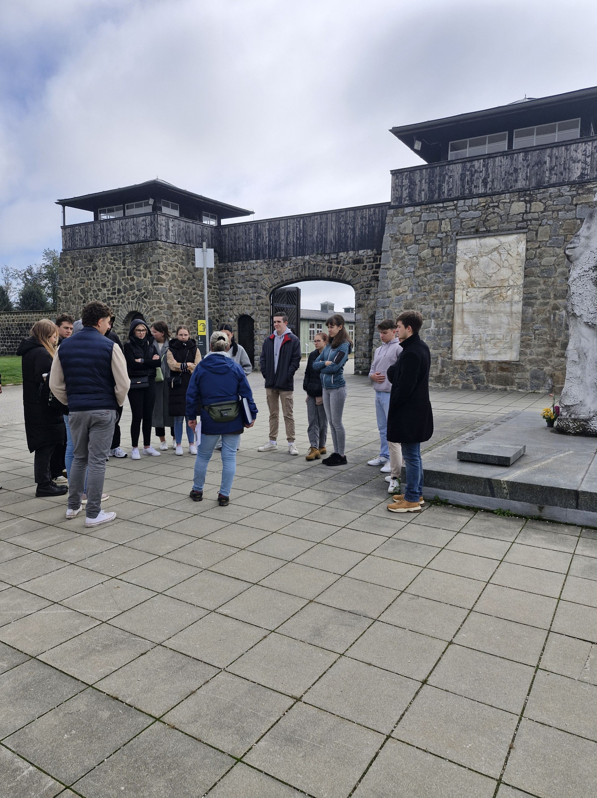 Unser erster Halt war die damalige Euthanasieanstalt Schloss Hartheim. Dies dient heute als Gedenkstätte und Lernort. Beeindruckt hat uns, dass heute in dieser Pflegeinrichtung junge, beeinträchtige Menschen arbeiten. Die sehr berührende Ausstellung bildete den Abschluss der tollen Führung.