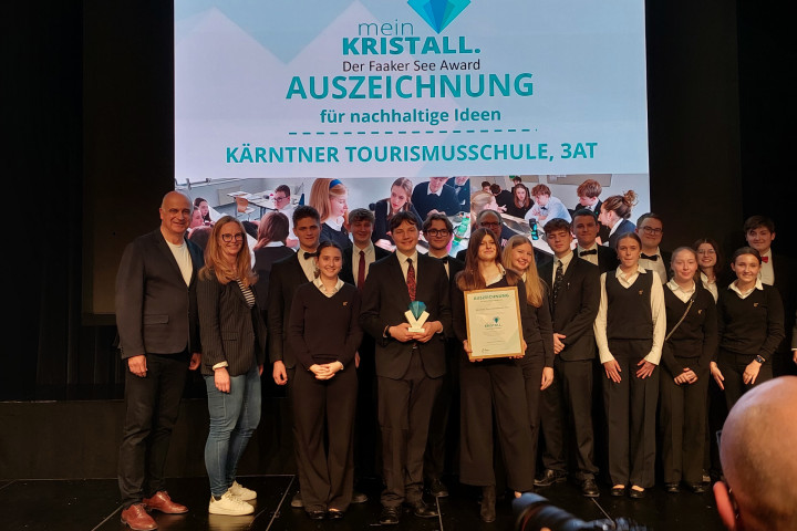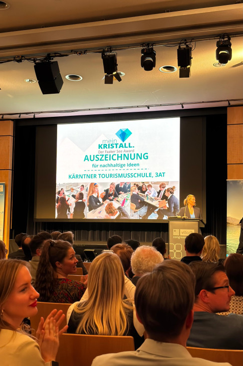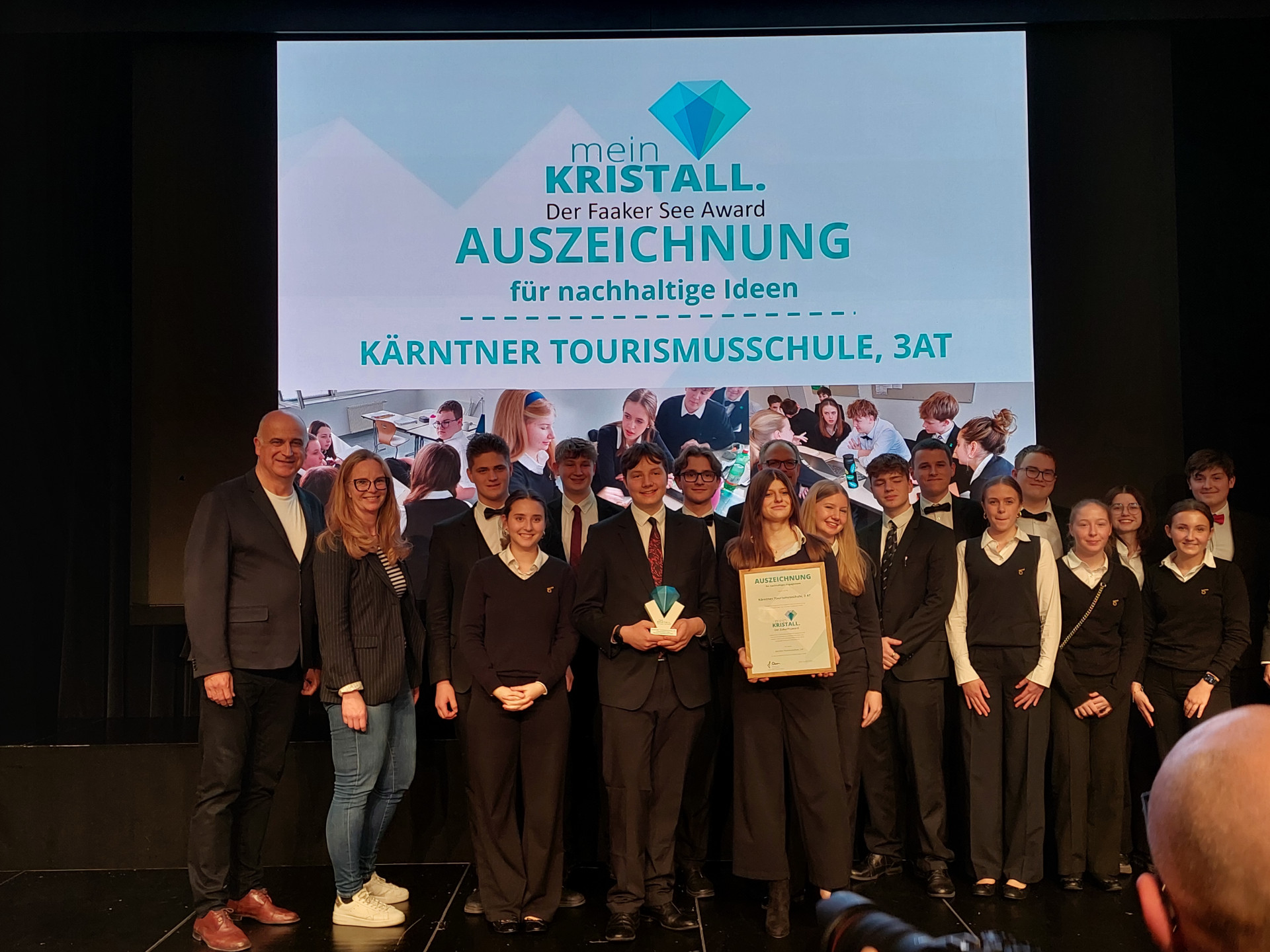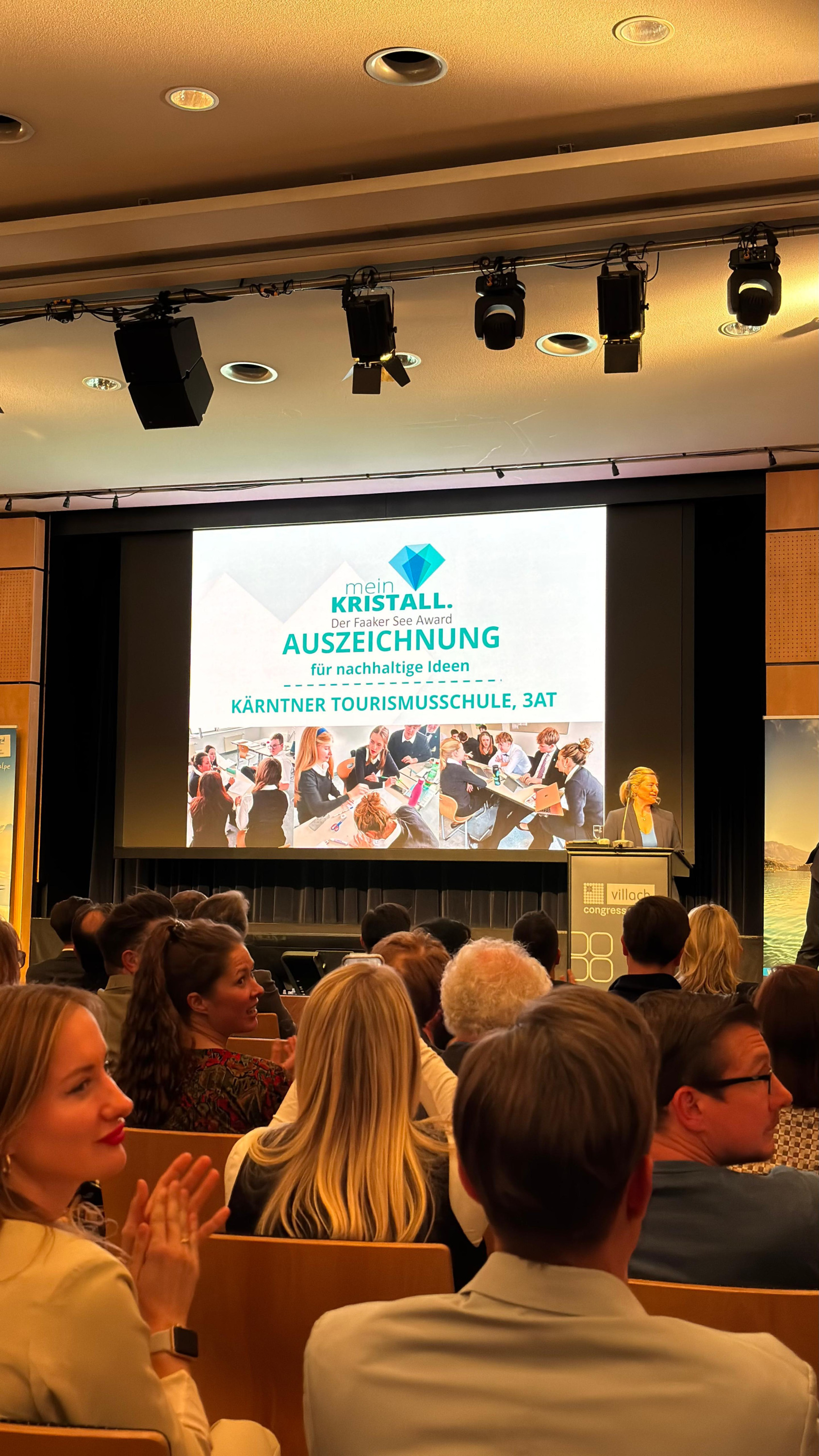 Die 3AT freut sich über den mein.KRISTALL Faaker See Zukunftsaward, der am 08.04.2025 beim Tourismustag der Tourismusregion Villach – Faaker See – Ossiacher See im Congress Center Villach verliehen wurde. Beide am Projekt teilnehmenden Klassen, 2AT und 3AT, waren zum Tourismustag eingeladen und nehmen einiges an praxisnahem wirtschaftlichem Input mit.