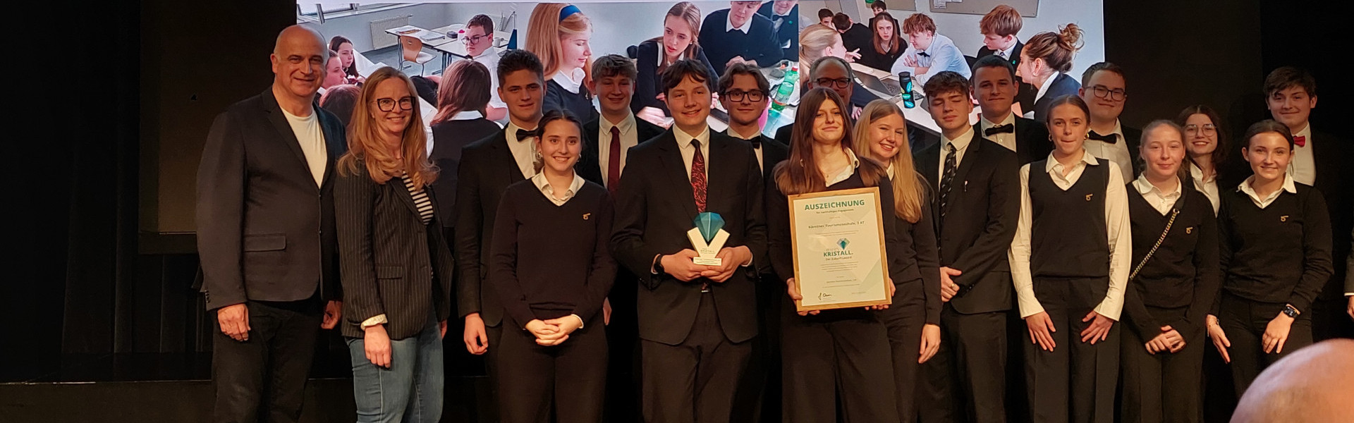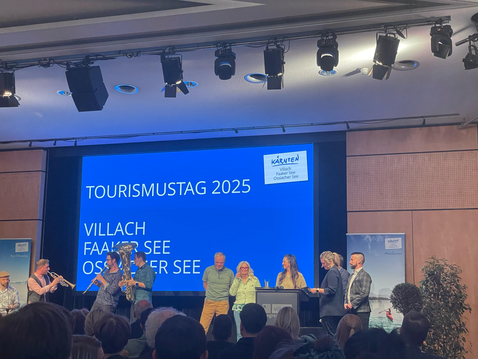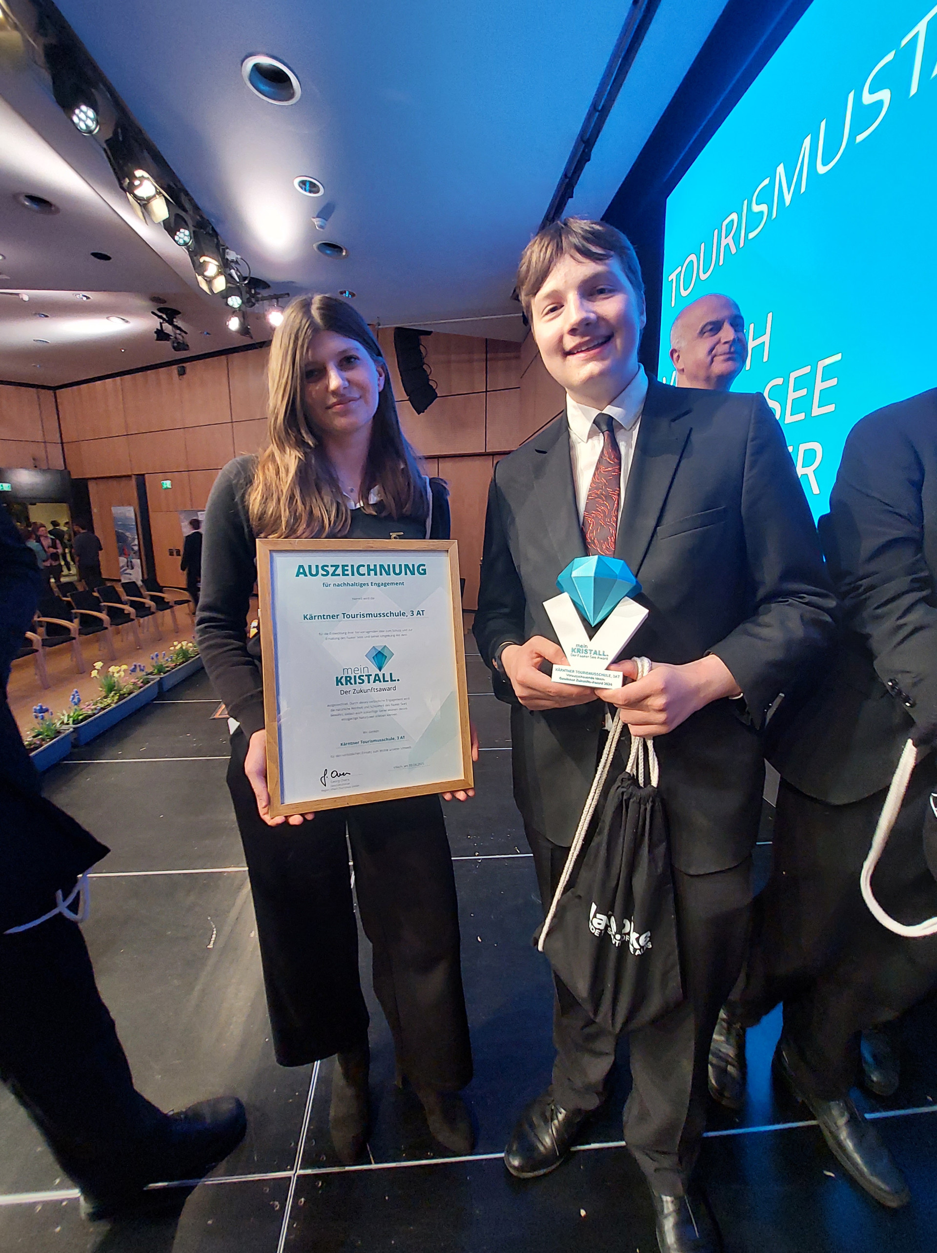 Die 3AT freut sich über den mein.KRISTALL Faaker See Zukunftsaward, der am 08.04.2025 beim Tourismustag der Tourismusregion Villach – Faaker See – Ossiacher See im Congress Center Villach verliehen wurde. Beide am Projekt teilnehmenden Klassen, 2AT und 3AT, waren zum Tourismustag eingeladen und nehmen einiges an praxisnahem wirtschaftlichem Input mit.